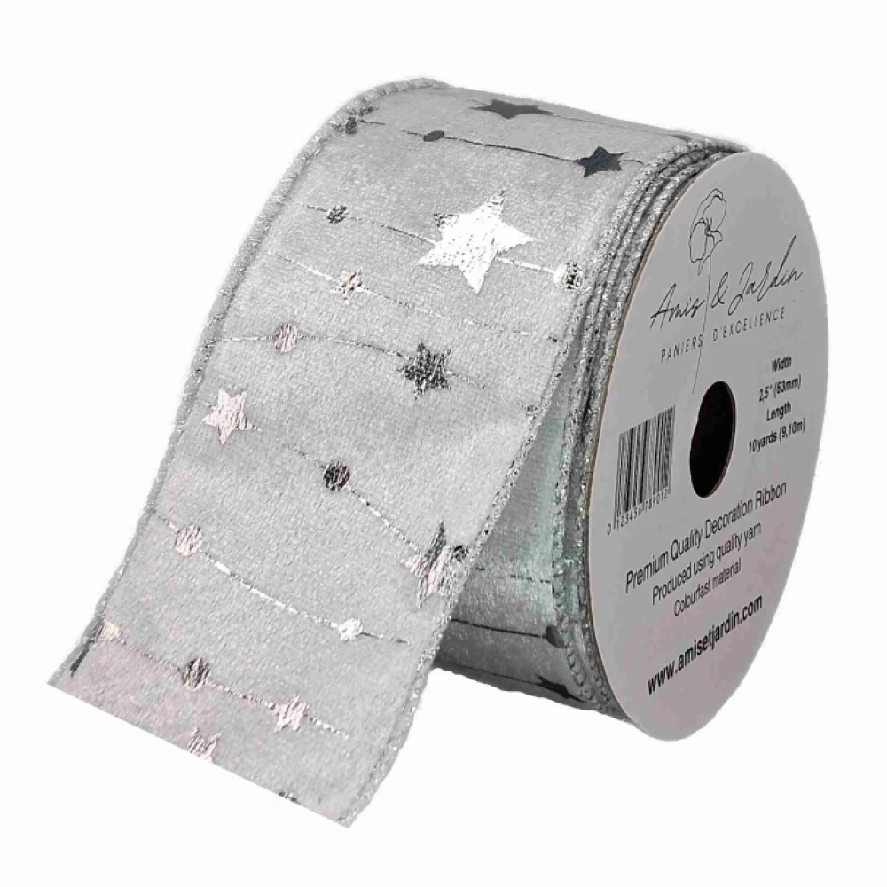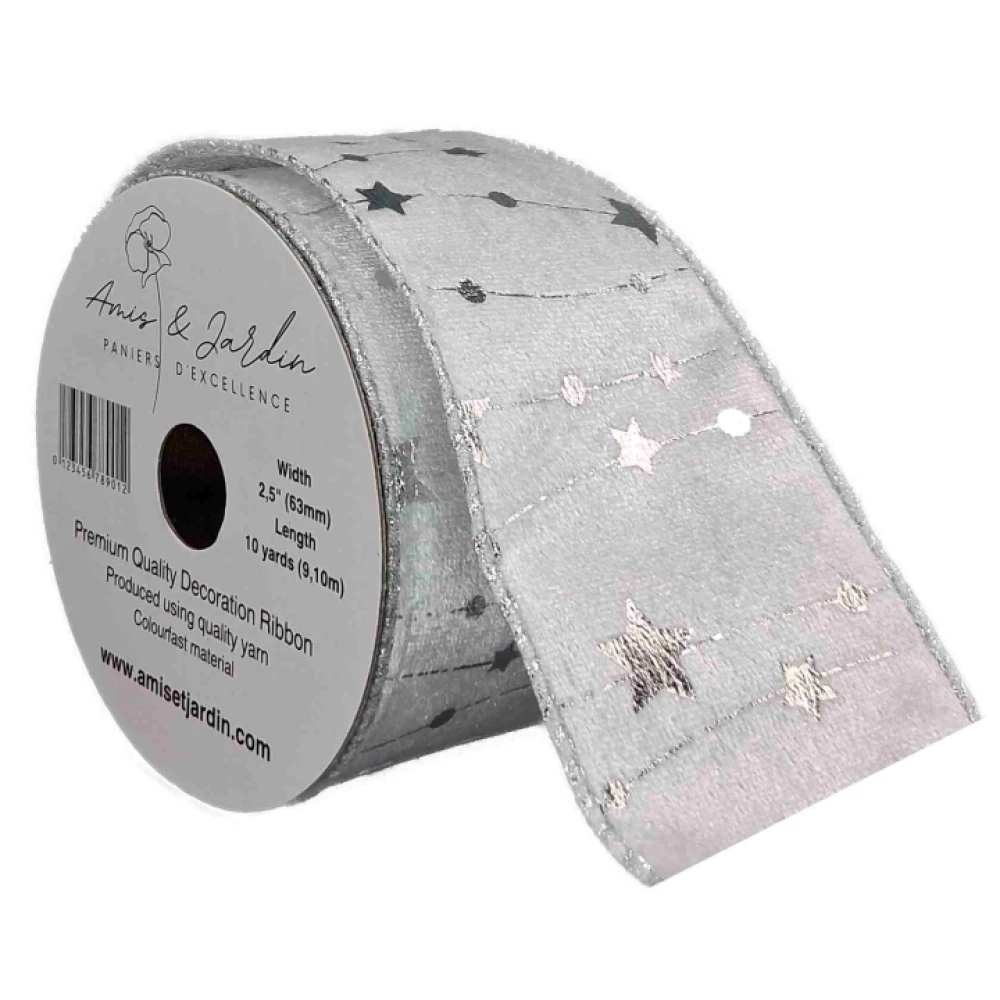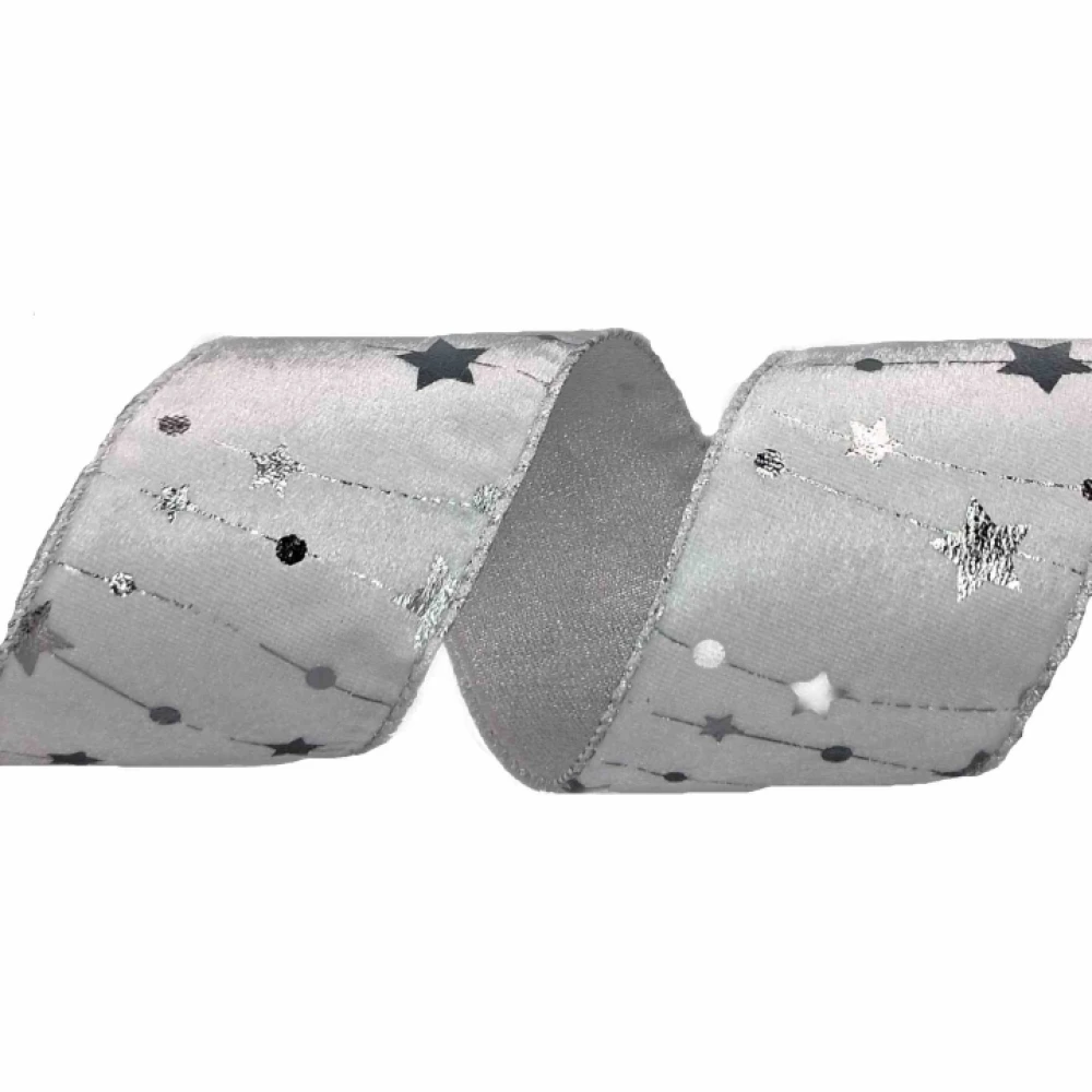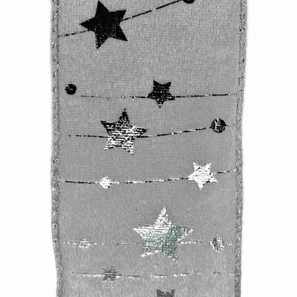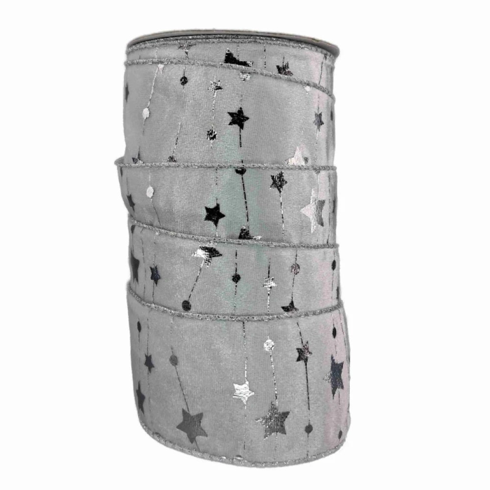 Stuha sametová s drátkem bílá zimní hvězdy 9.1 m