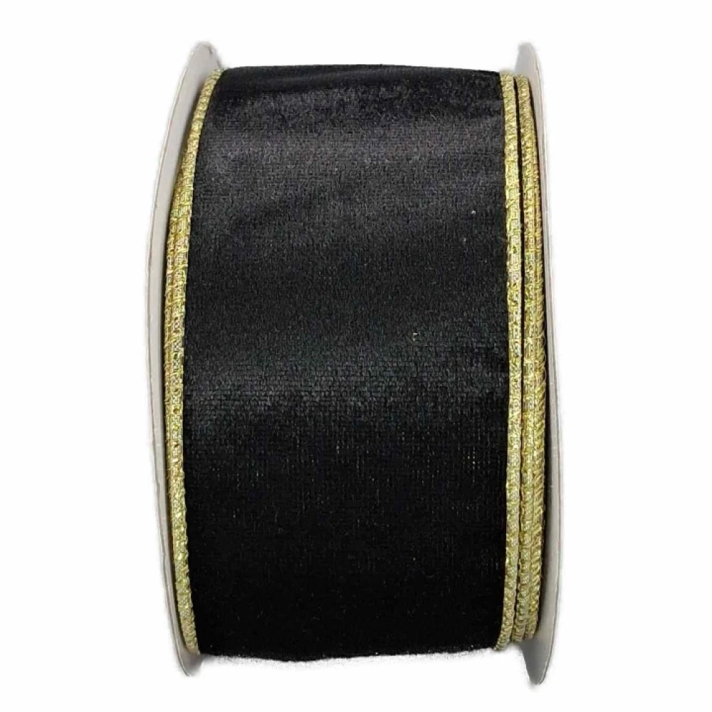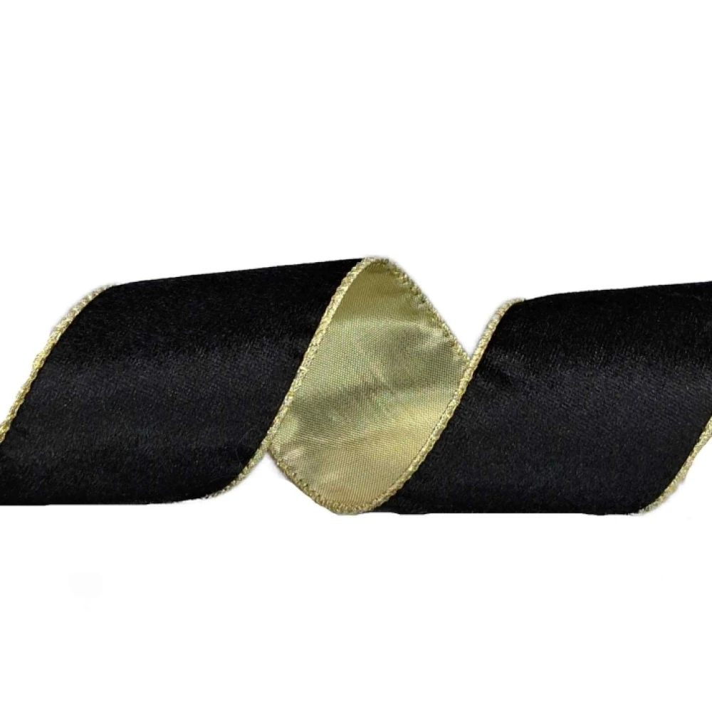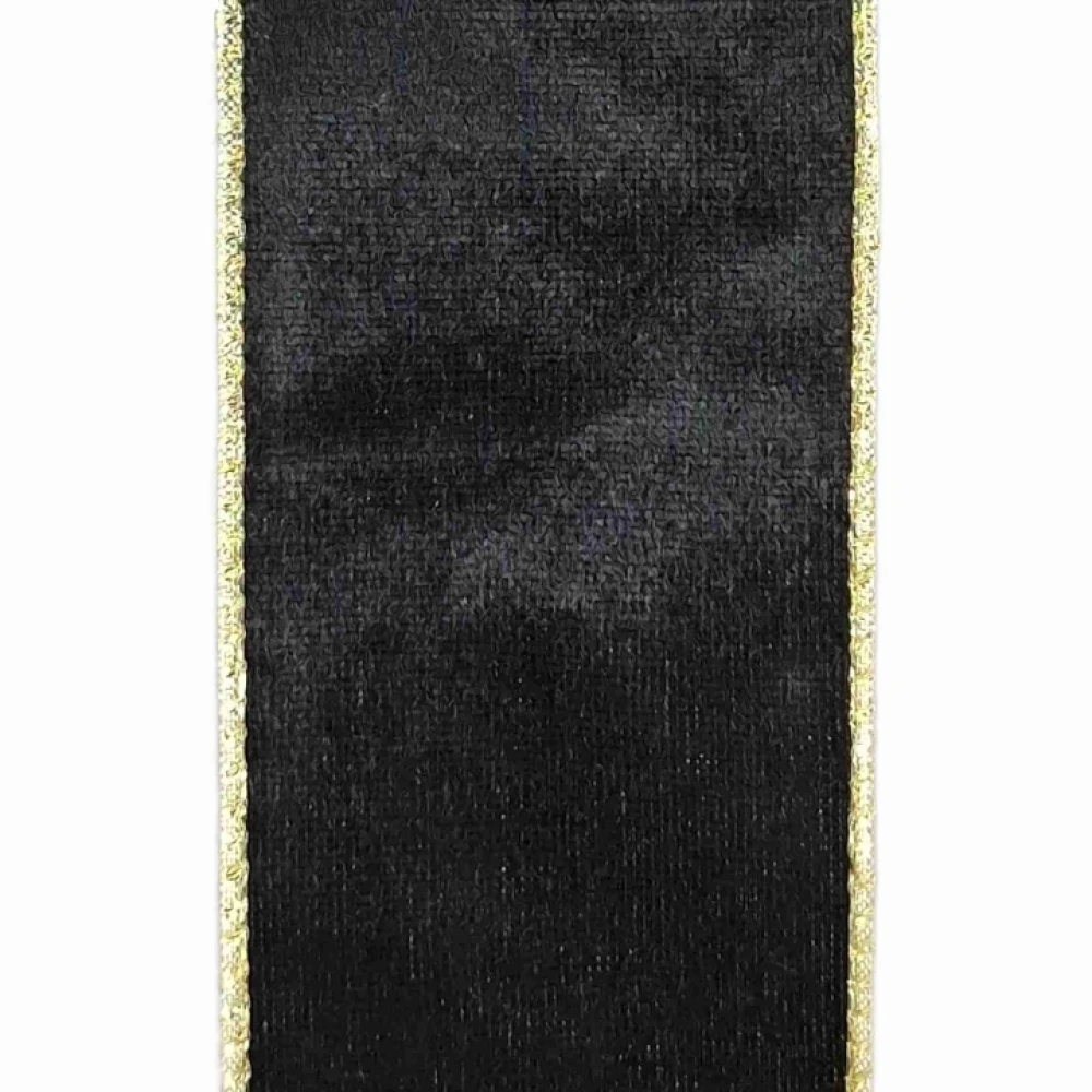 Stuha sametová s drátkem černá zlatý lem 9.1 m