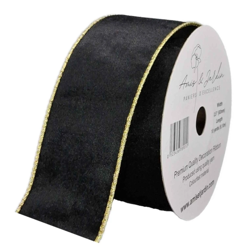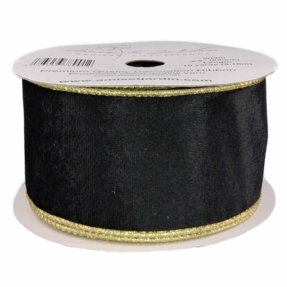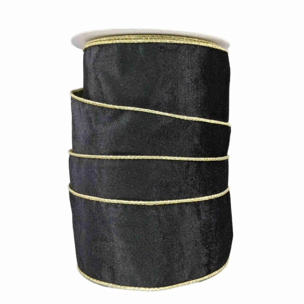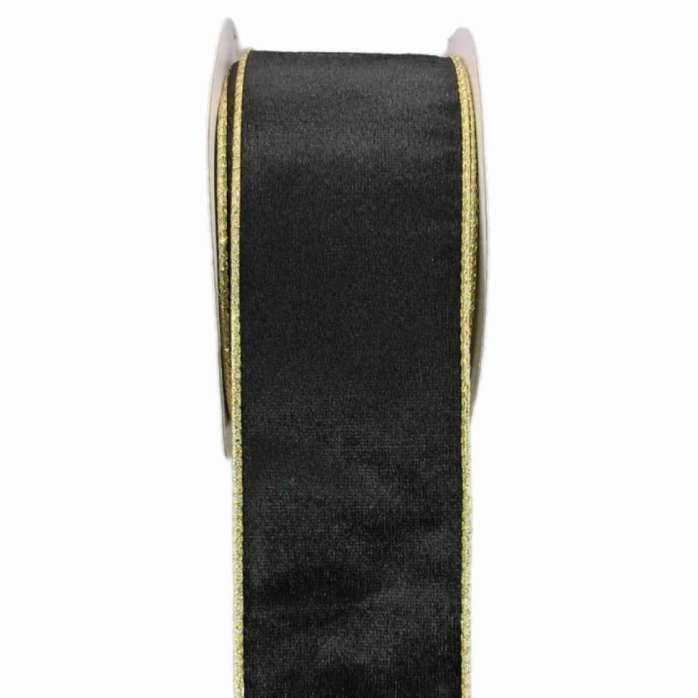 - Stuha sametová s drátkem černá zlatý lem 9.1 m