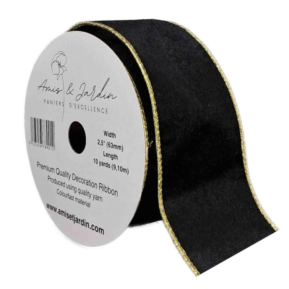 Černá sametová stuha se zlatým třpytivým okrajem je ideální pro elegantní a slavnostní dekorace. Díky drátkovému lemu snadno vytvoříte krásné mašle na dárky, adventní věnce nebo vánoční stromeček. Stuhy jsou skladem. Objednejte dnes do 17:00, zítra vám je doručíme kamkoliv po ČR. Kurýra můžete díky GPS sledovat online.
