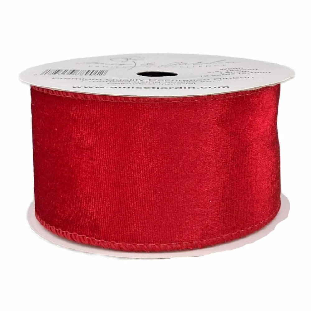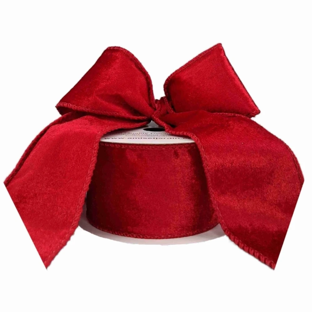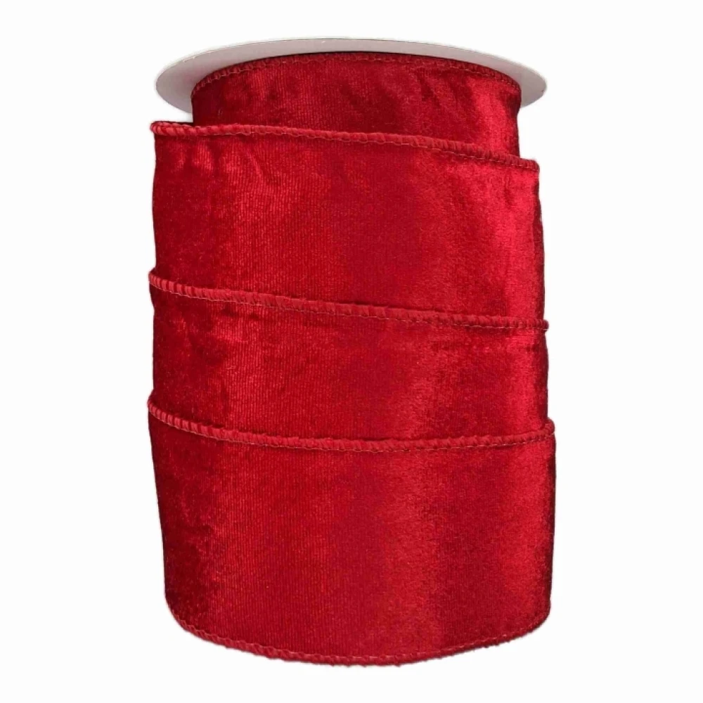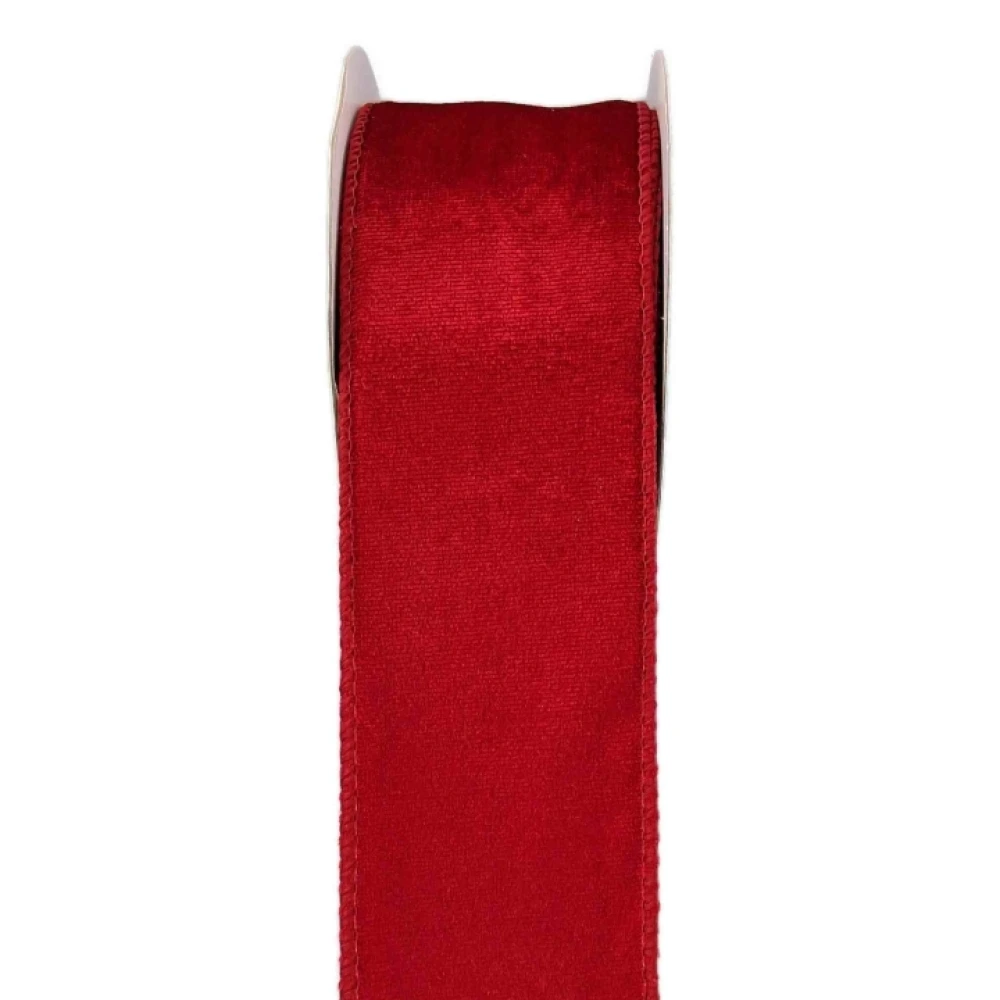 Stuha sametová s drátkem červená vánoční 9.1 m