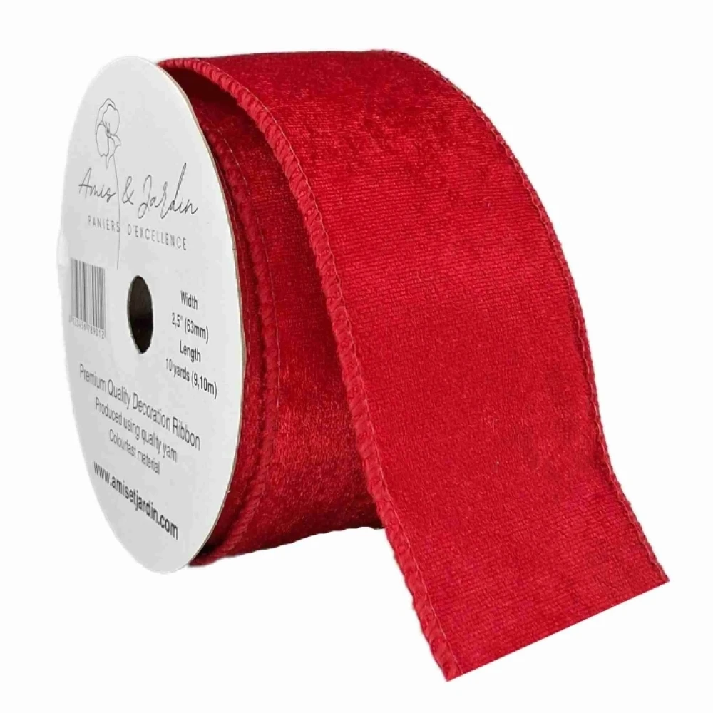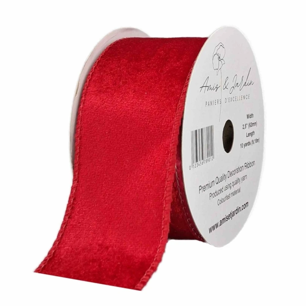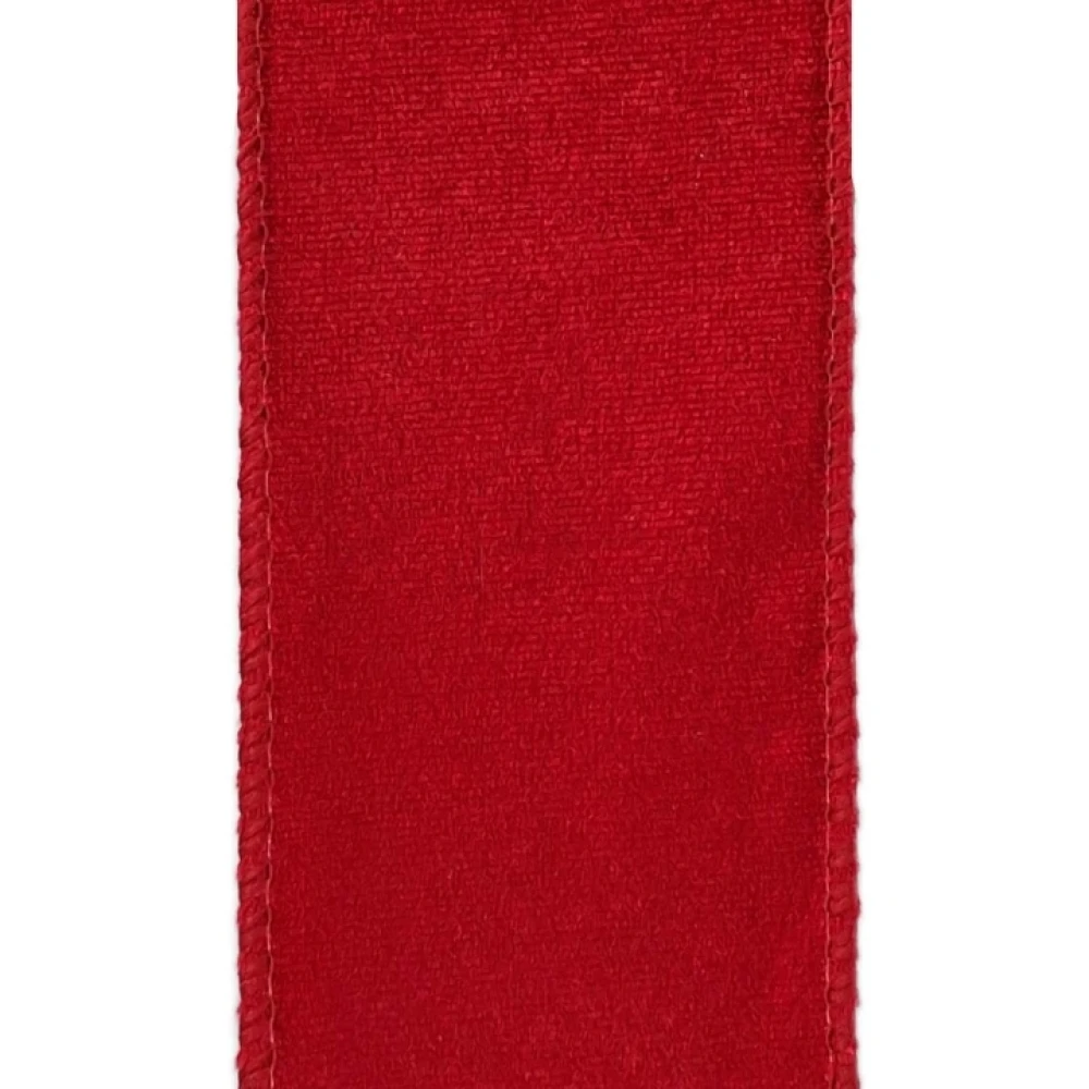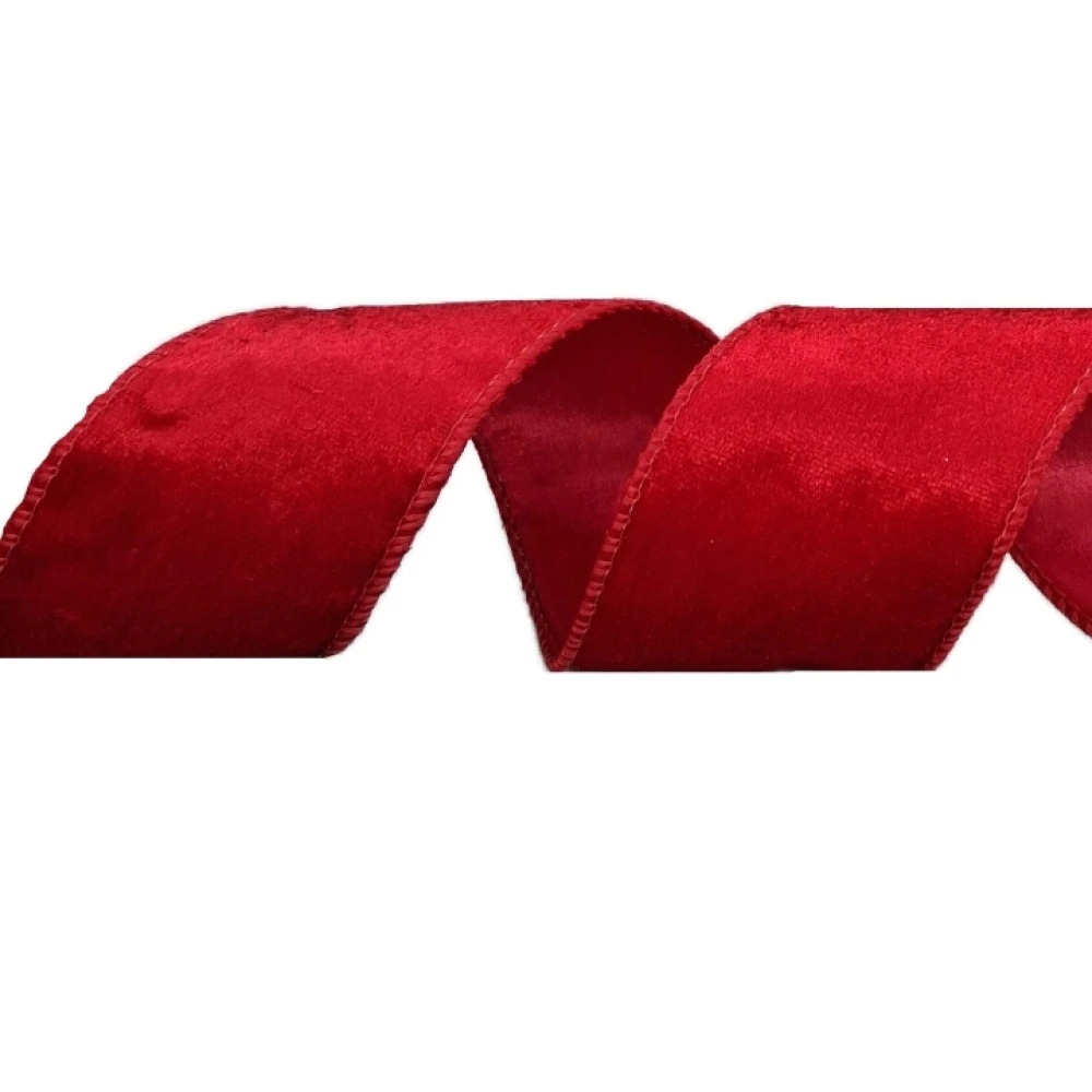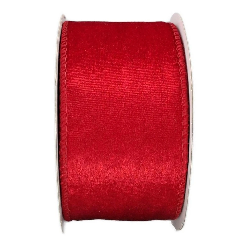 Stuha sametová s drátkem červená vánoční 9.1 m