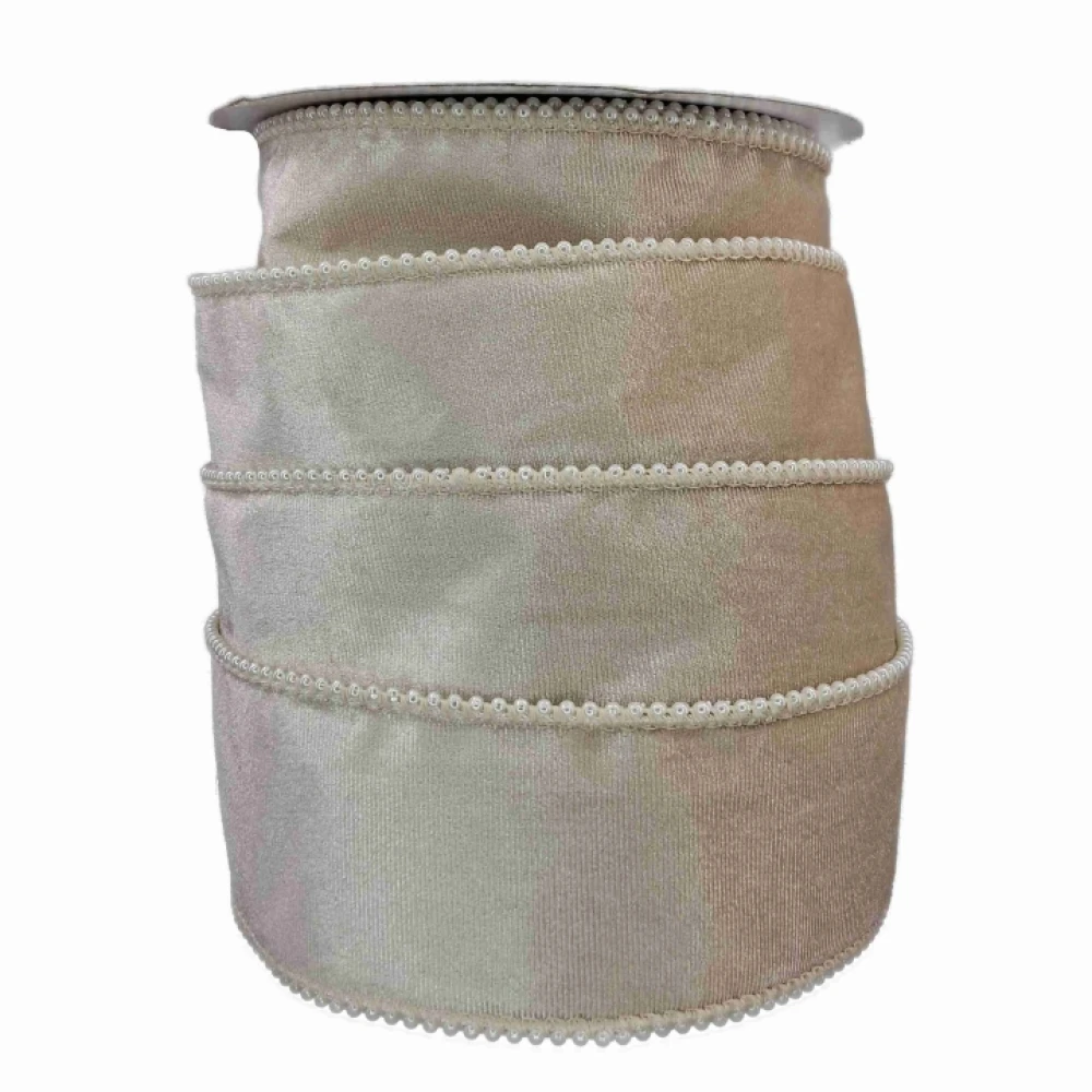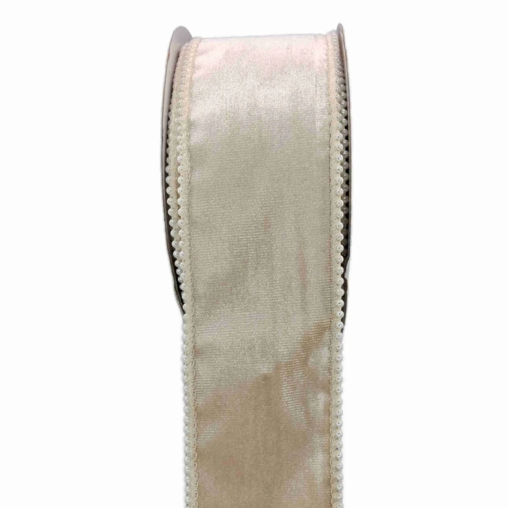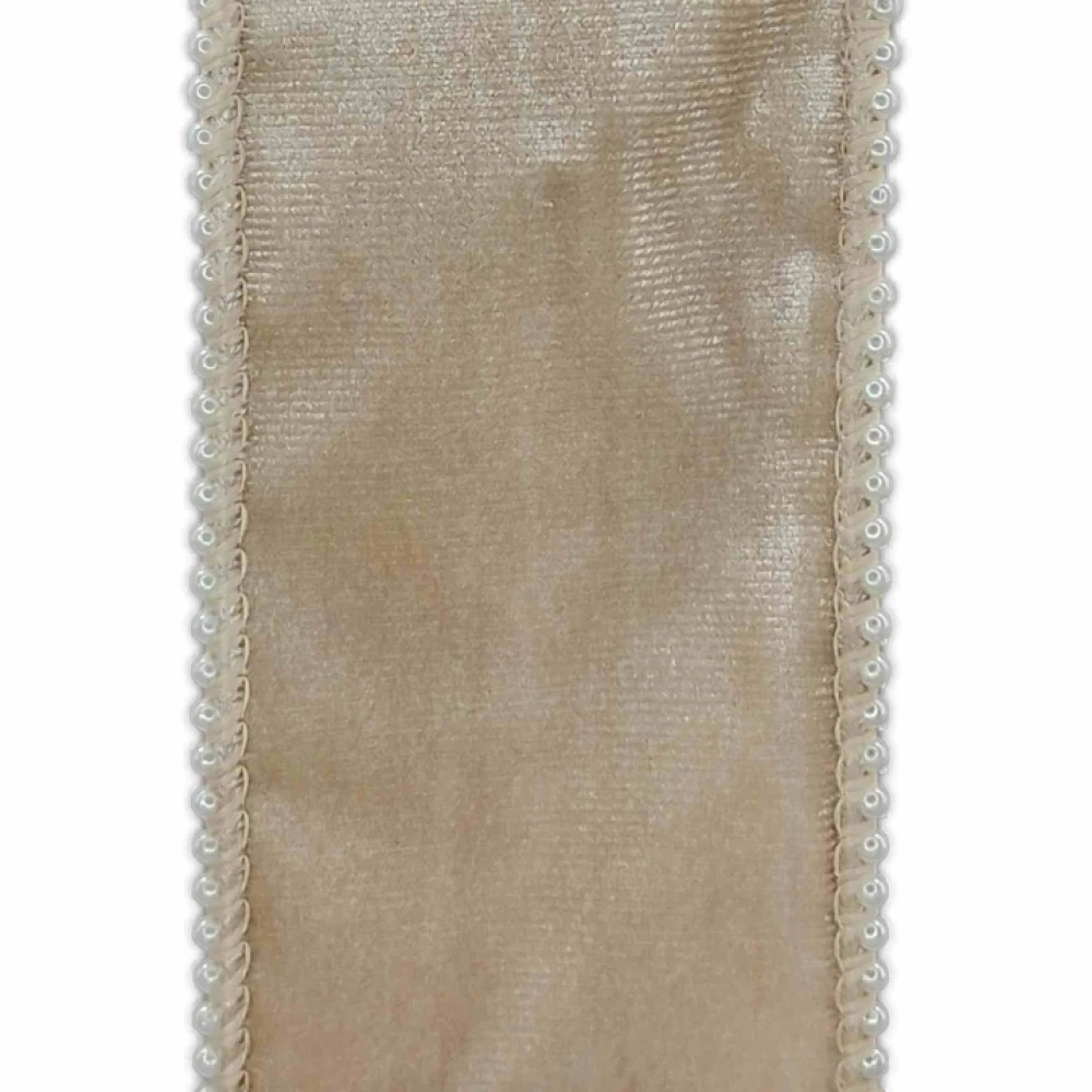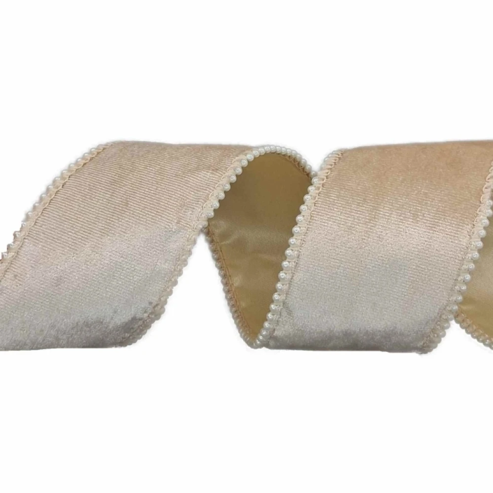 Stuha sametová s drátkem champagne s perličkami 9.1 m