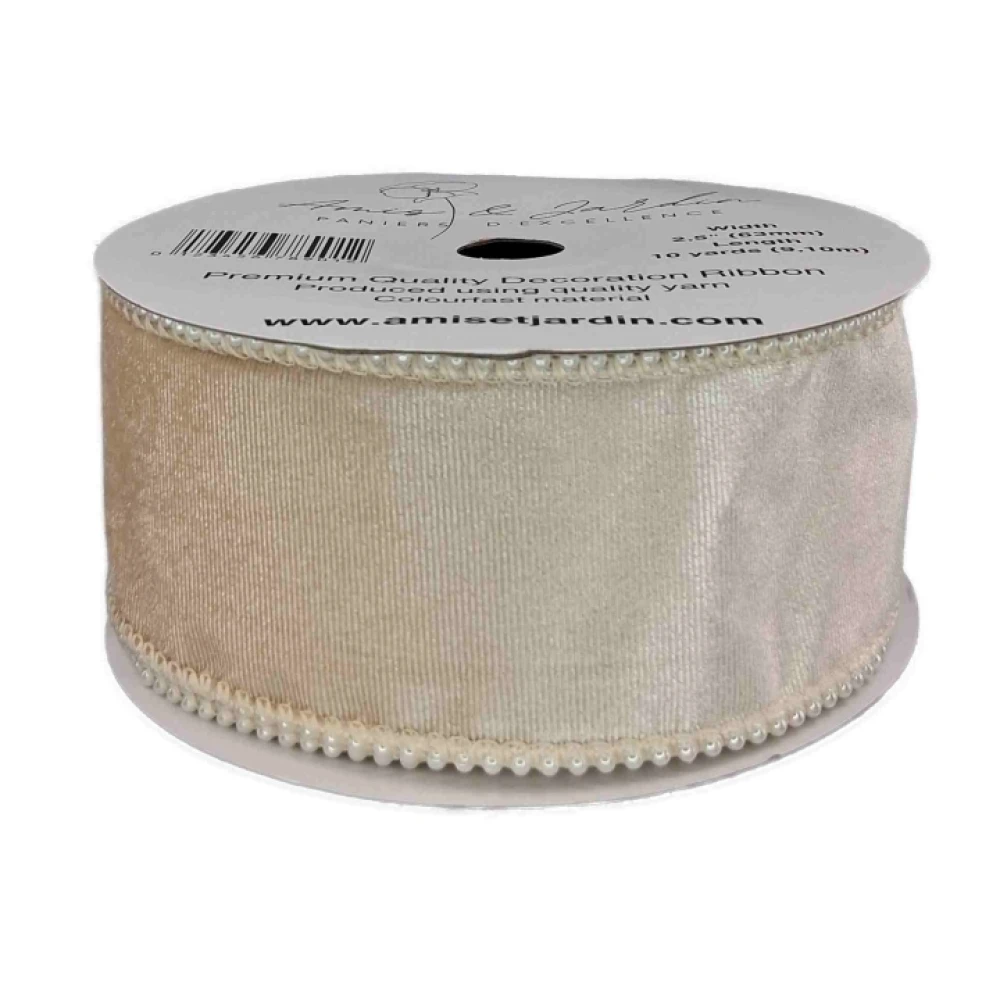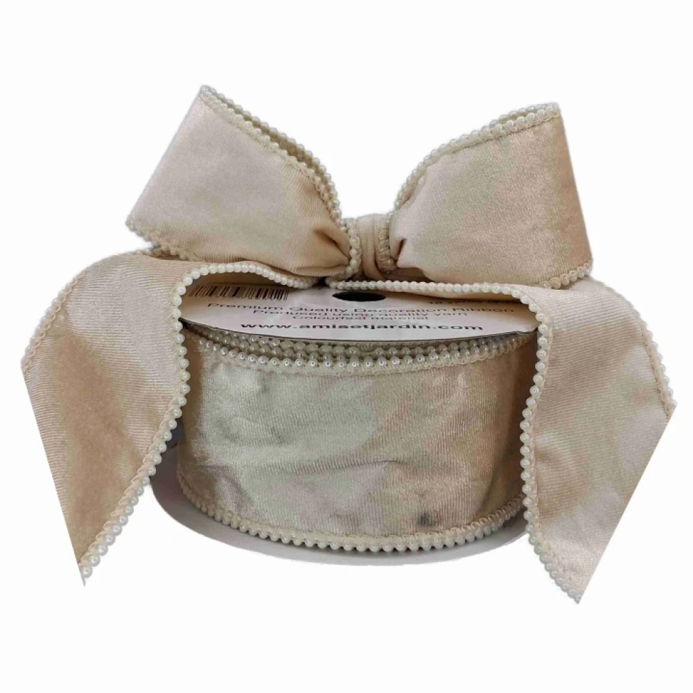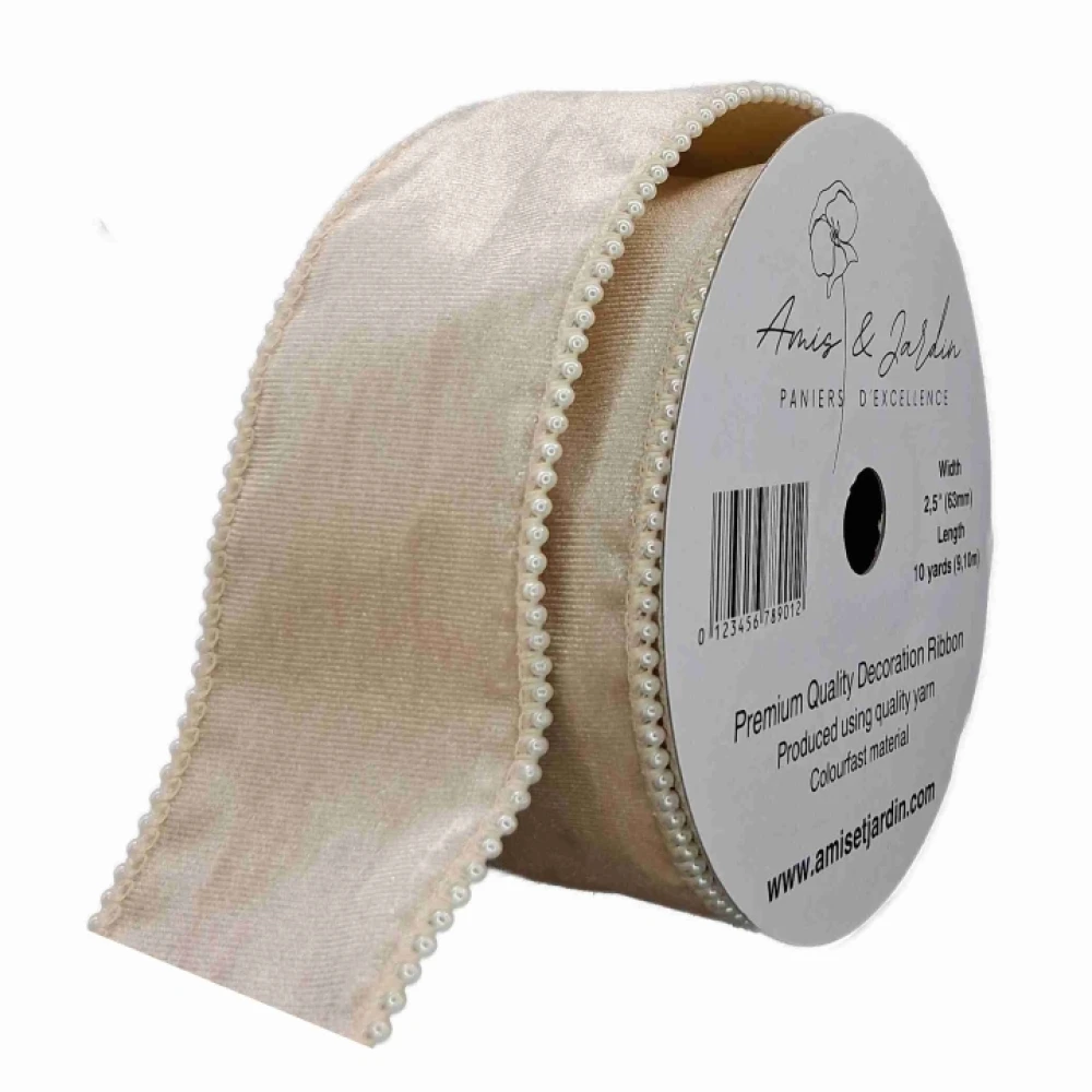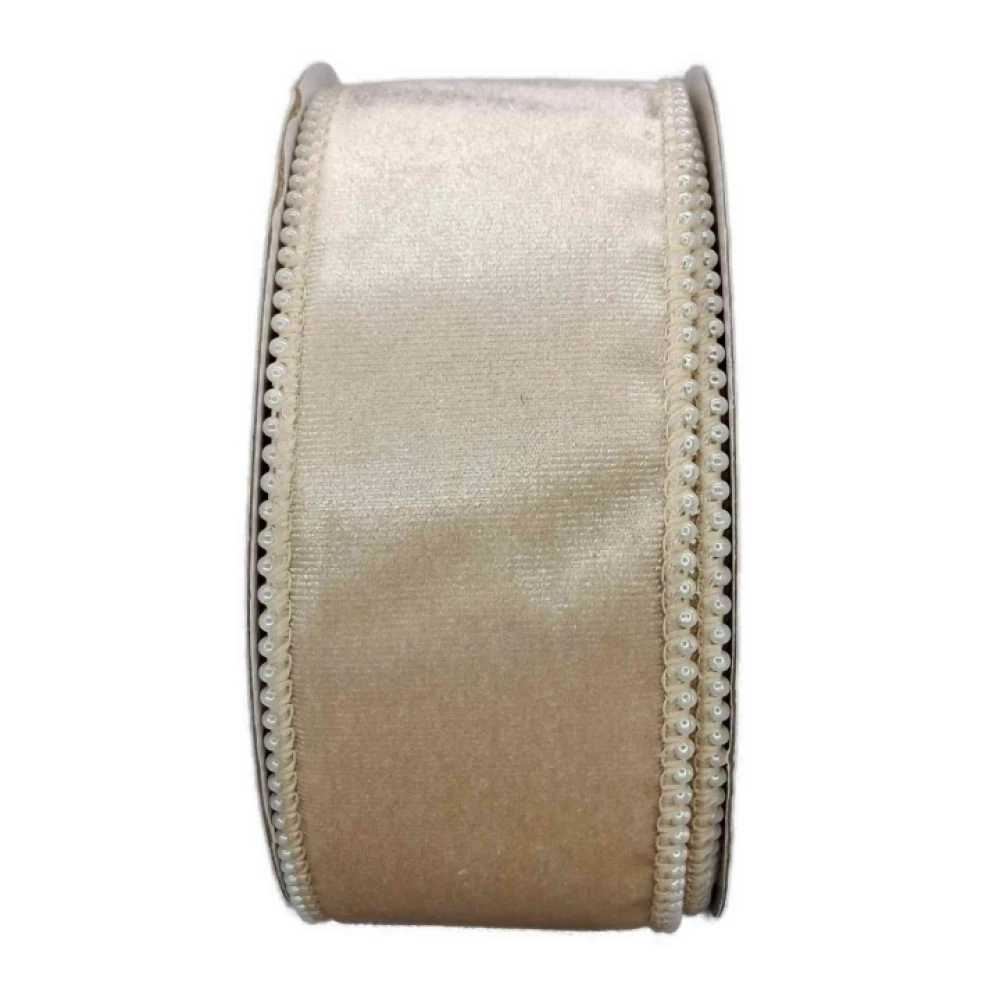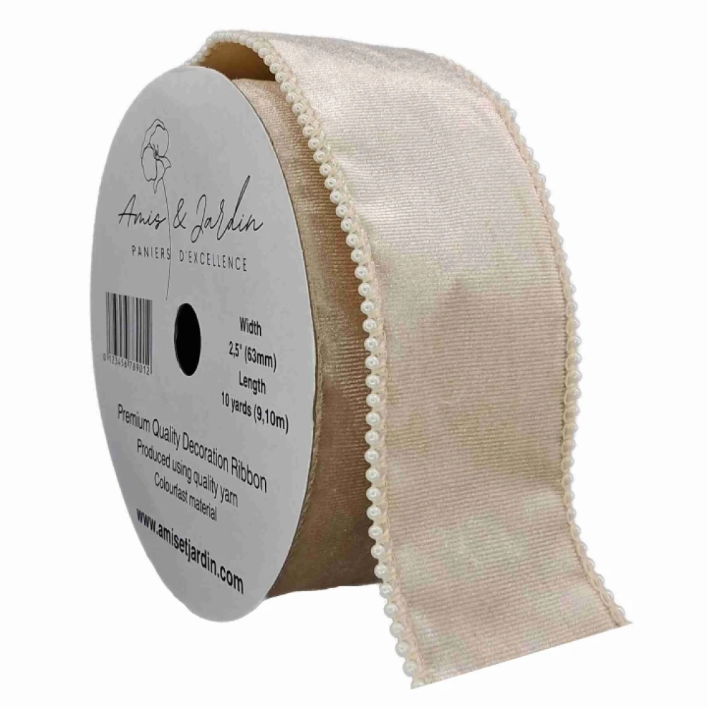 Stuha sametová s drátkem champagne s perličkami 9.1 m