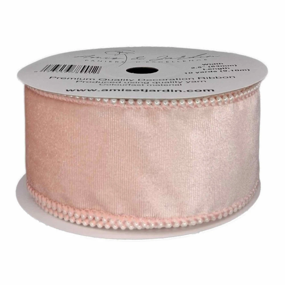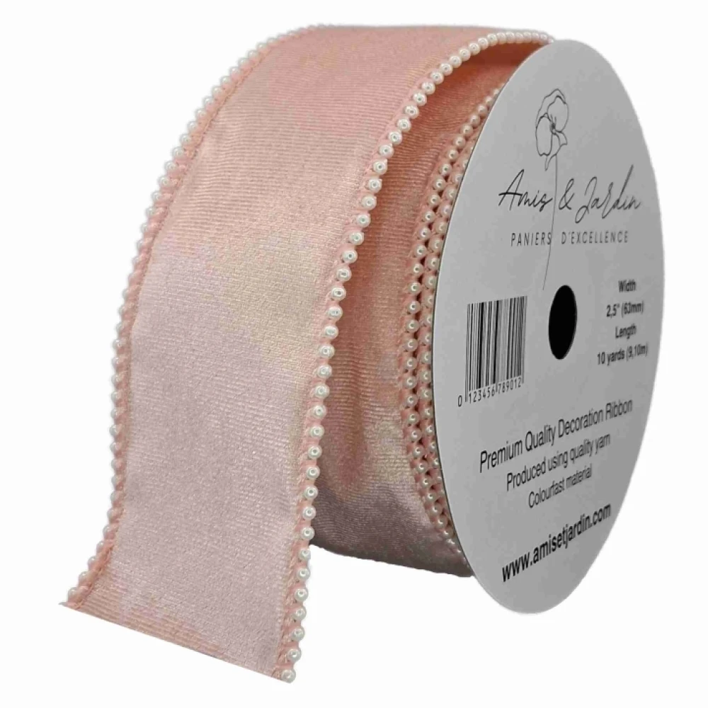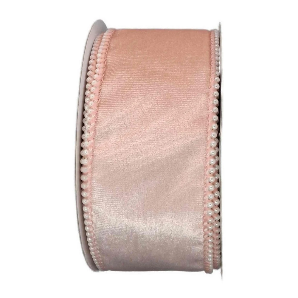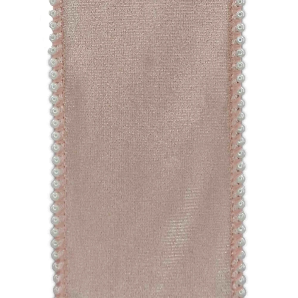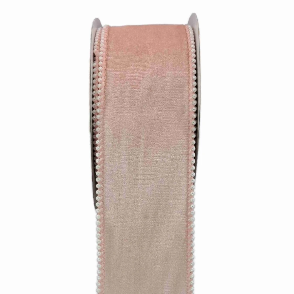 Stuha sametová s drátkem růžová s perličkami 9.1 m