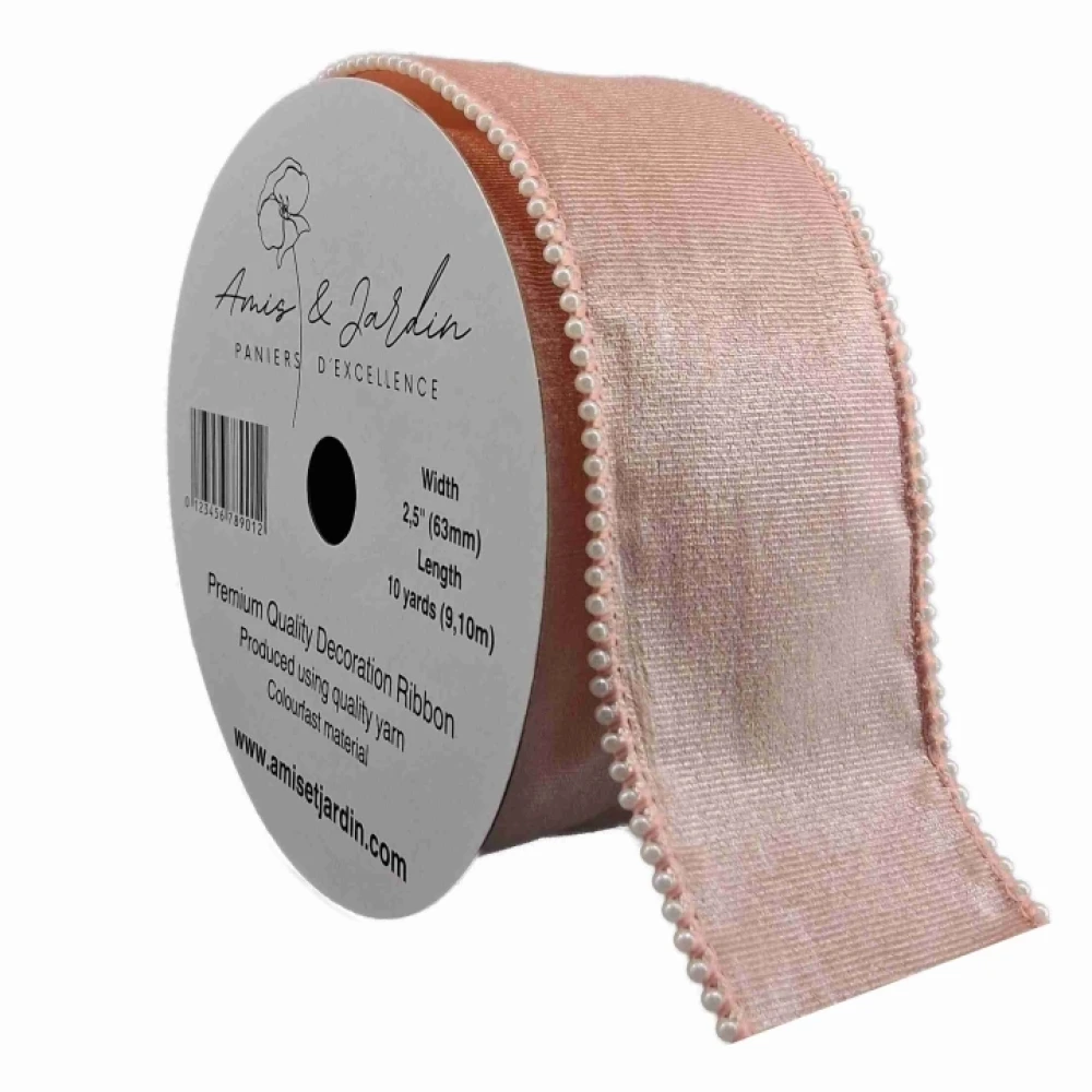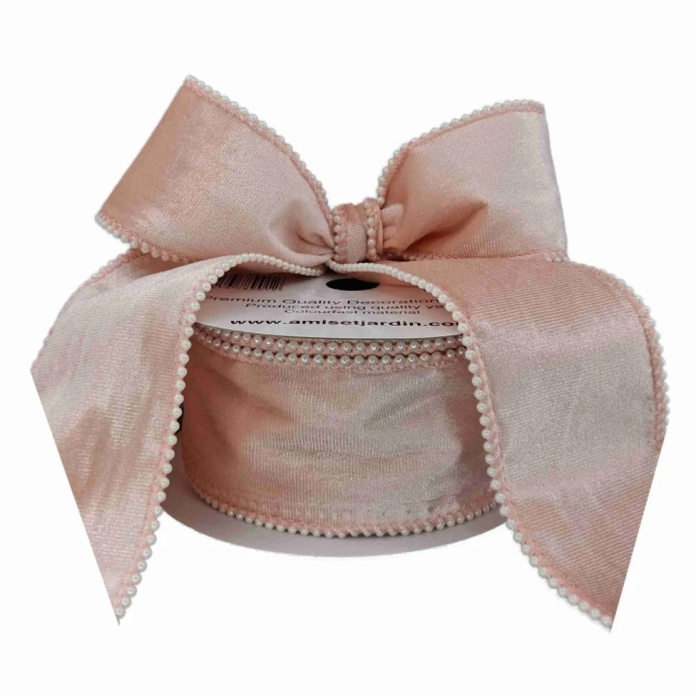 - Stuha sametová s drátkem růžová s perličkami 9.1 m