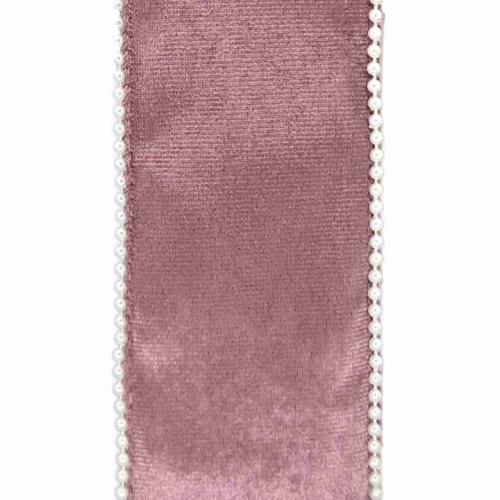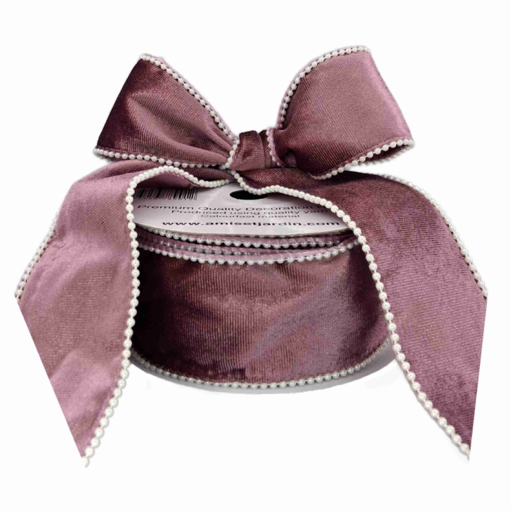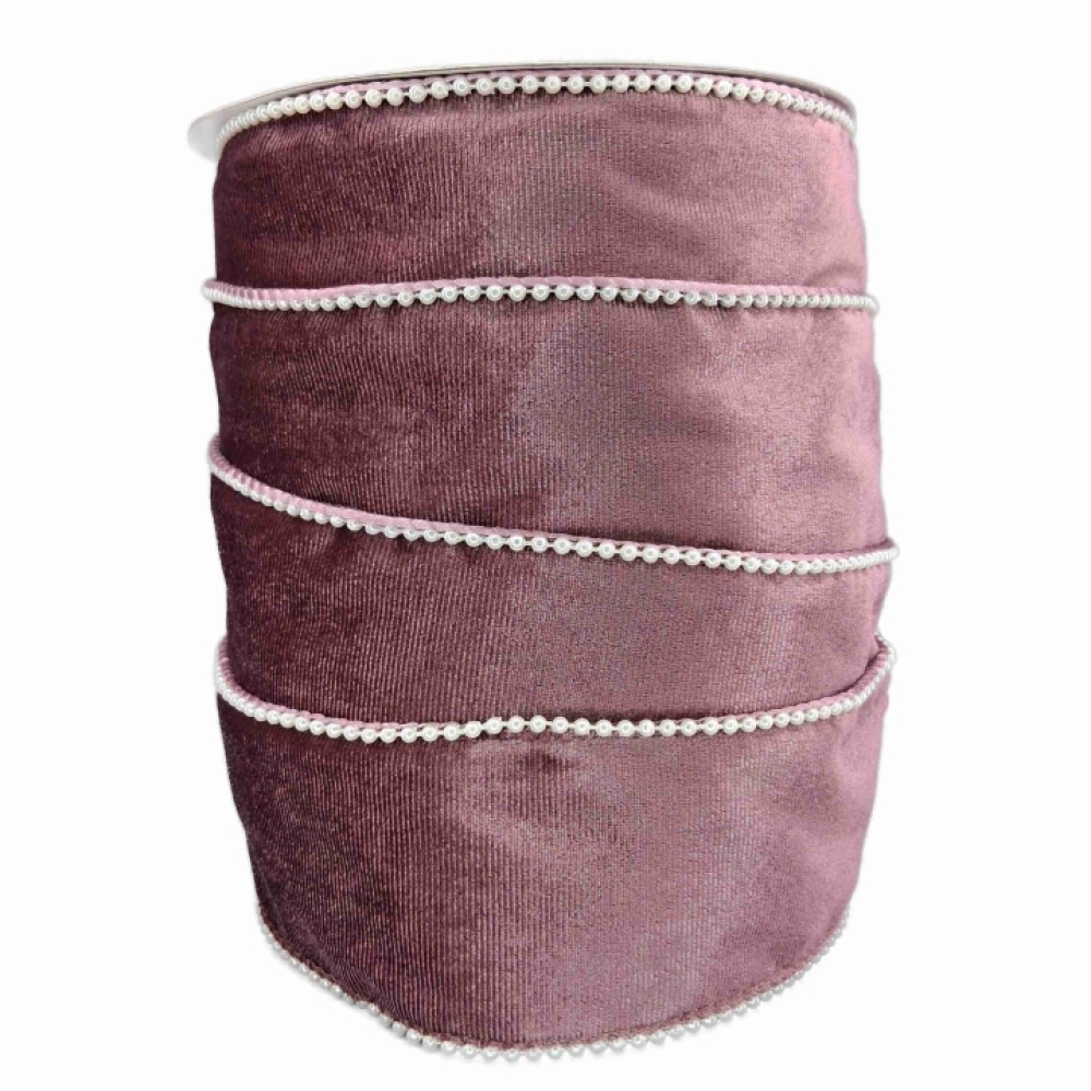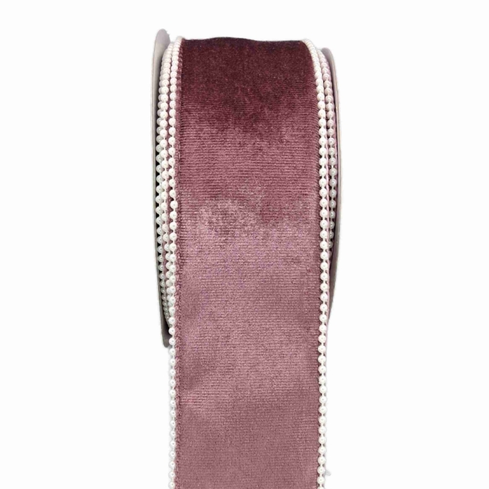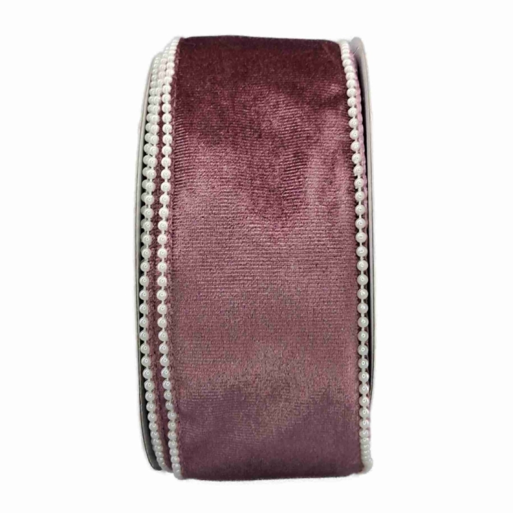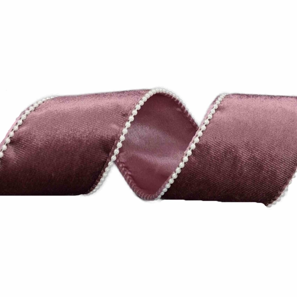 Sametová vínová stuha s perličkovým okrajem, elegantní a luxusní - vhodná pro svatby, slavnostní výzdobu či dárkové balení.