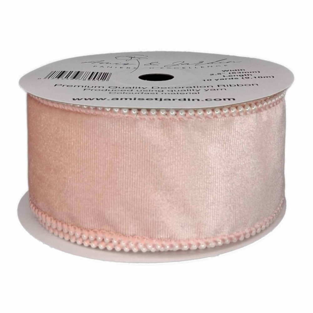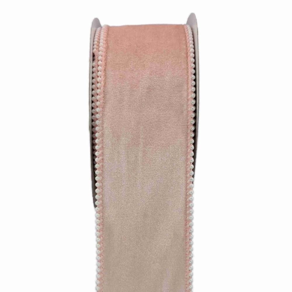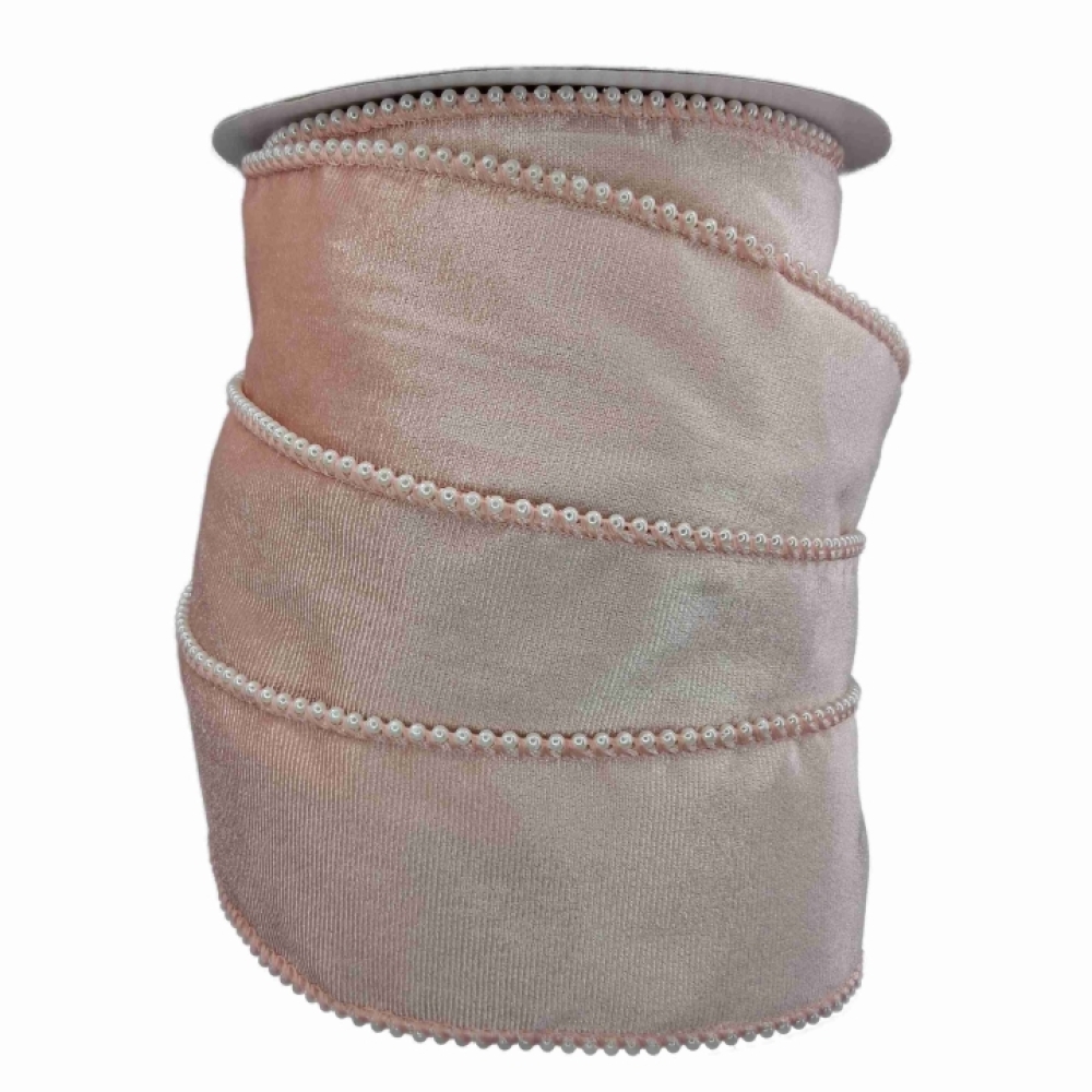 Pudrová růžová stuha s perličkovým okrajem, působí elegantně a jemně - vhodná pro svatební či dárkové dekorace.