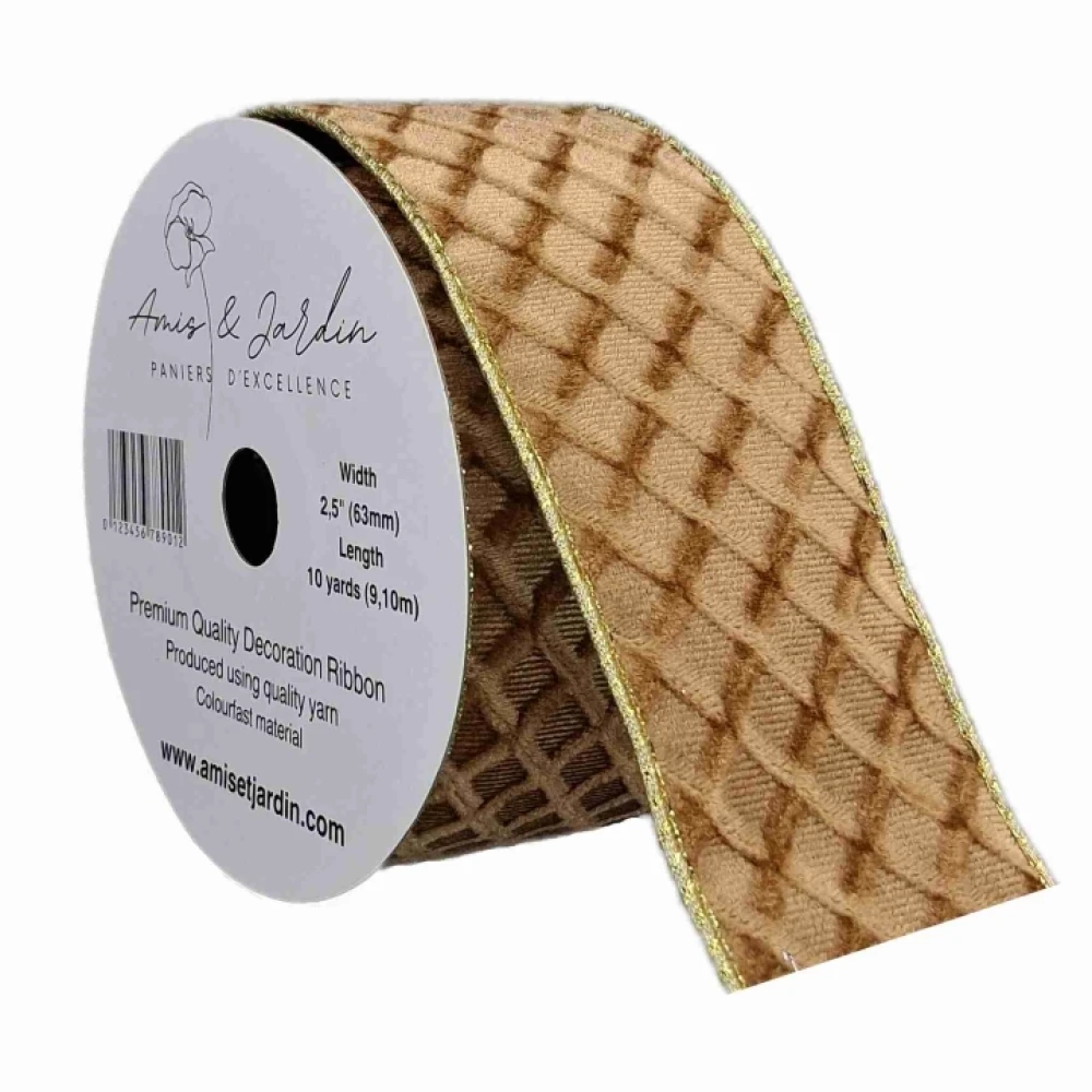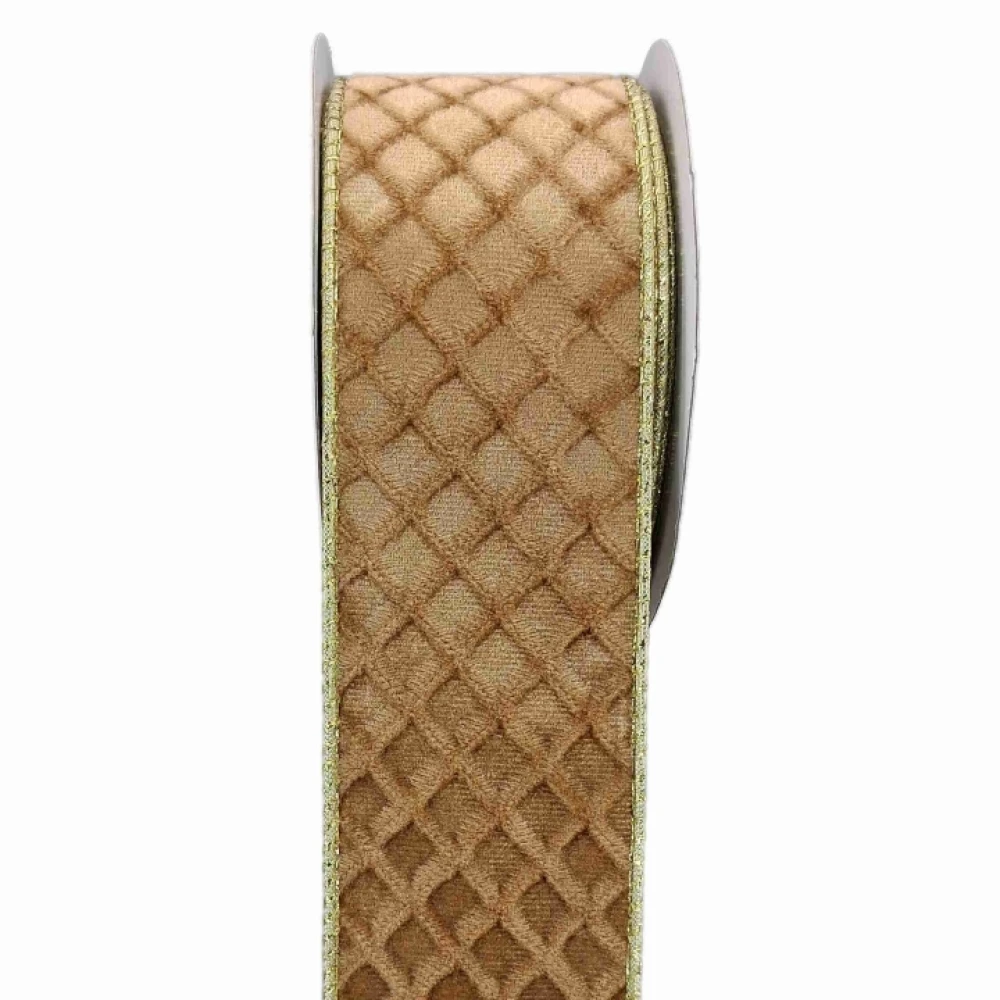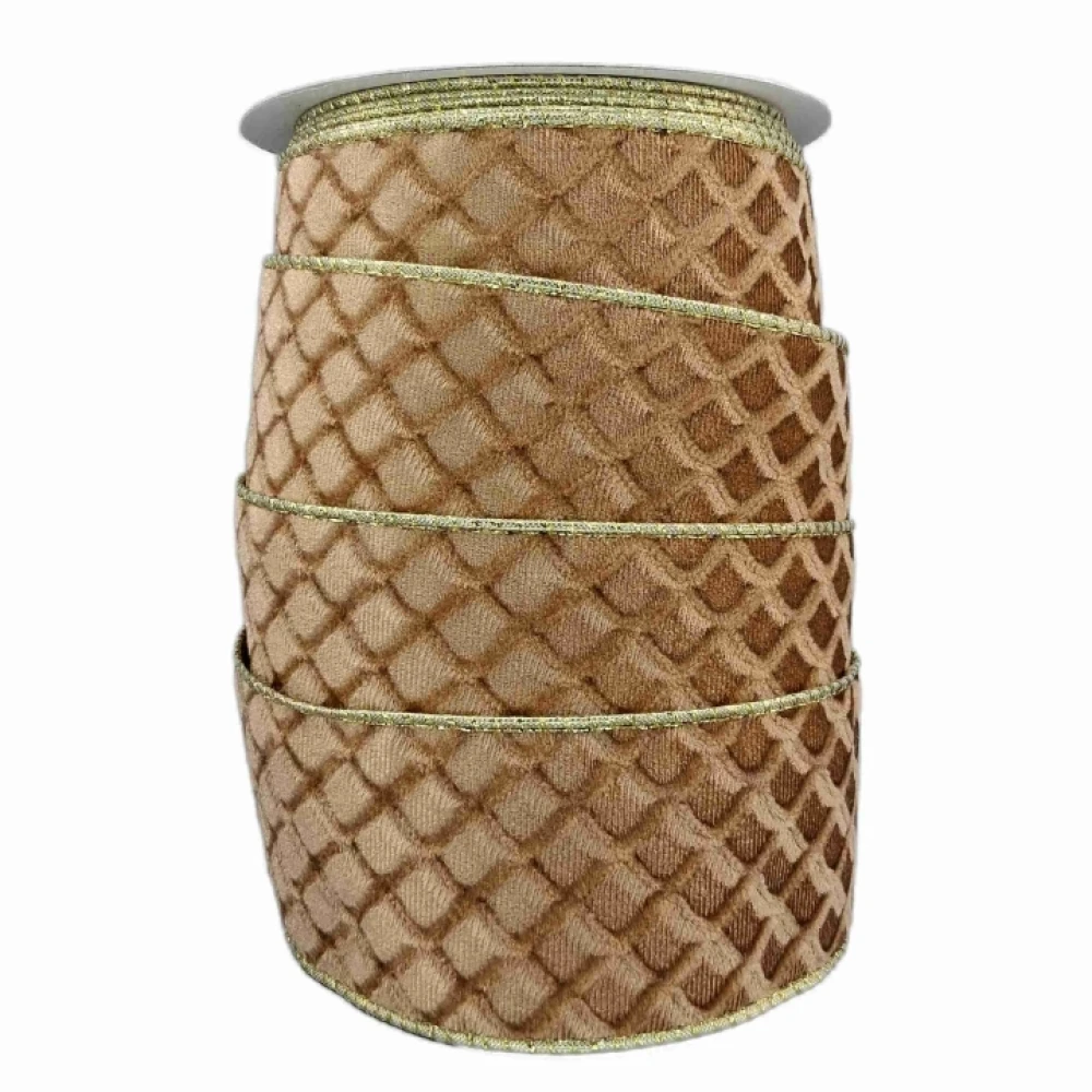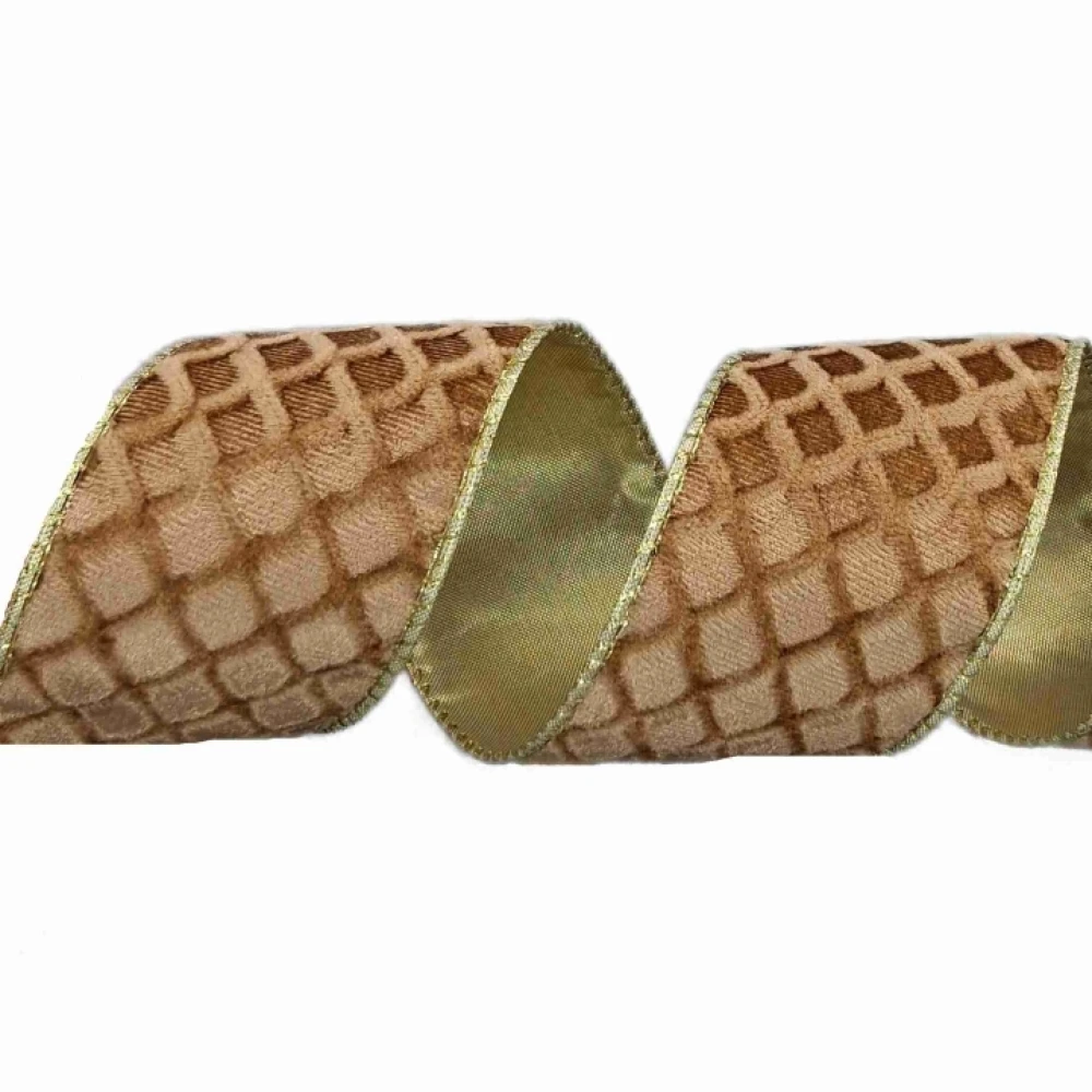 - Stuha sametová s drátkem zlatá geometrie 9.1 m