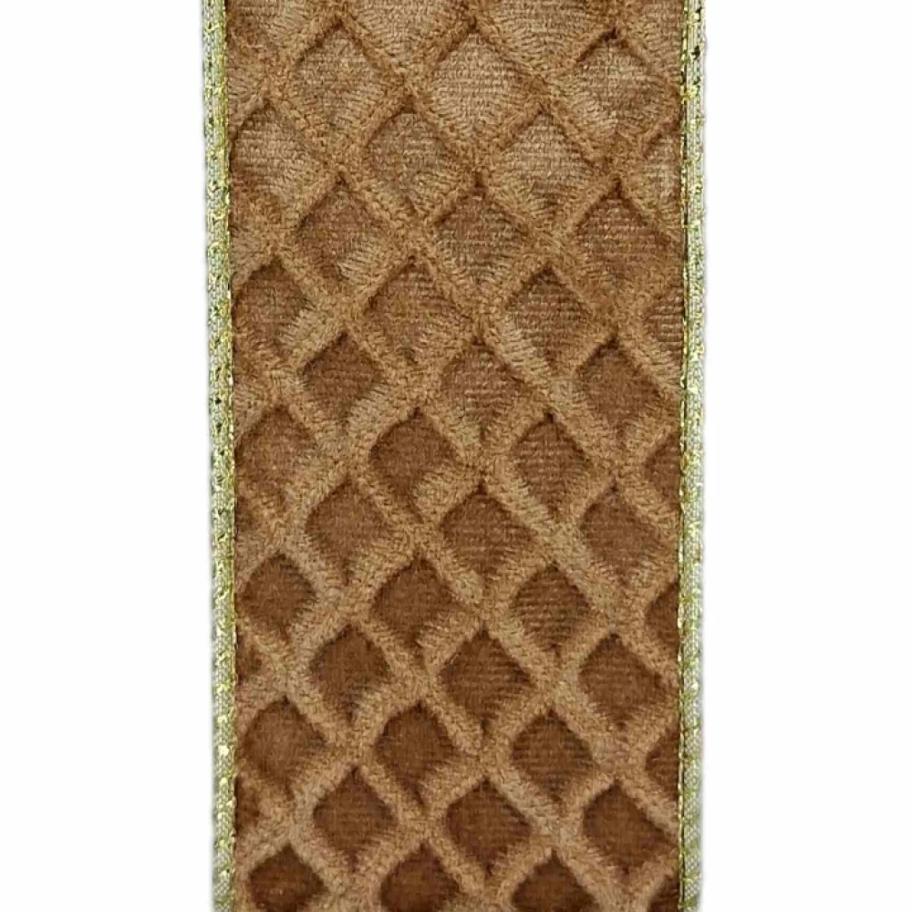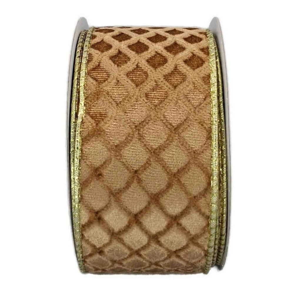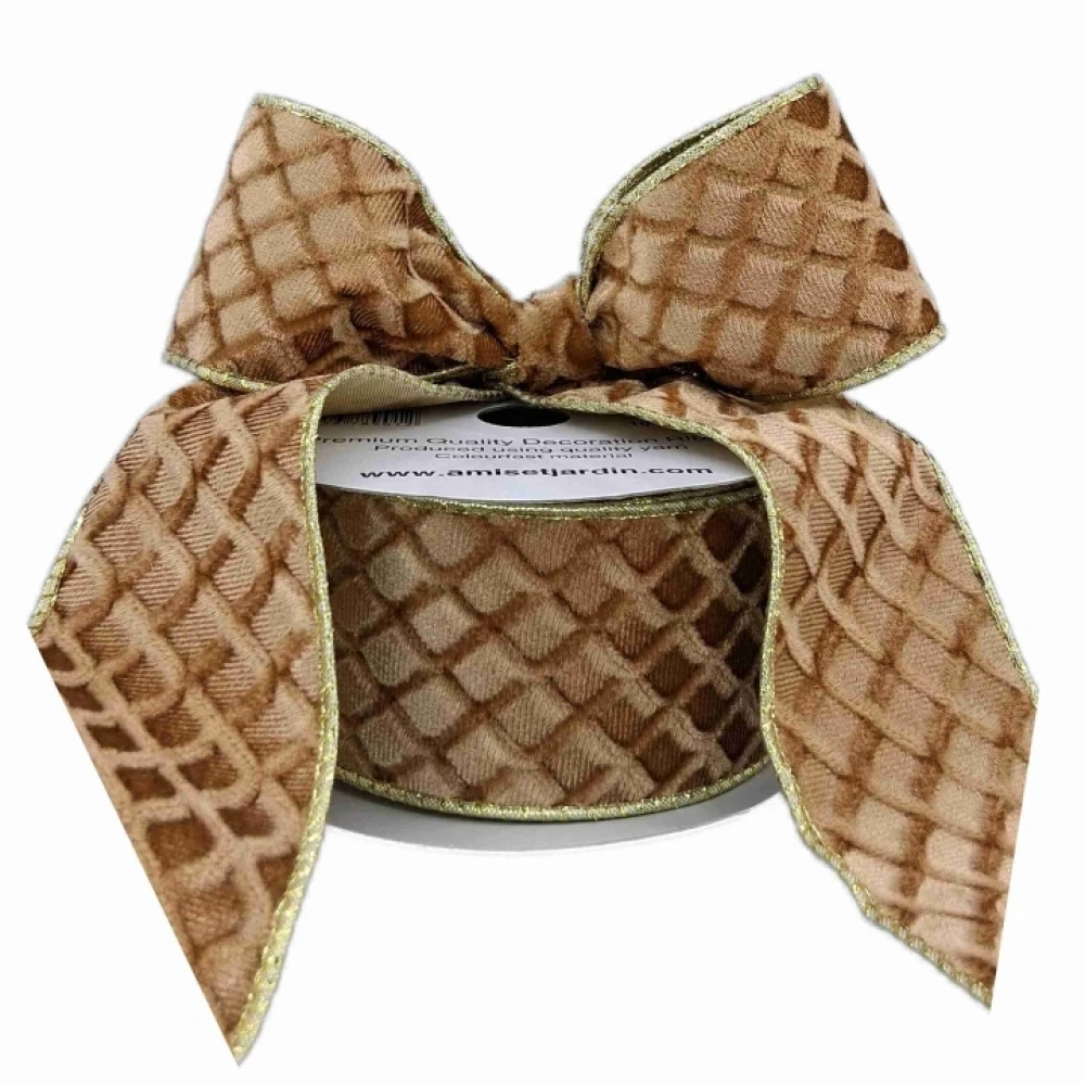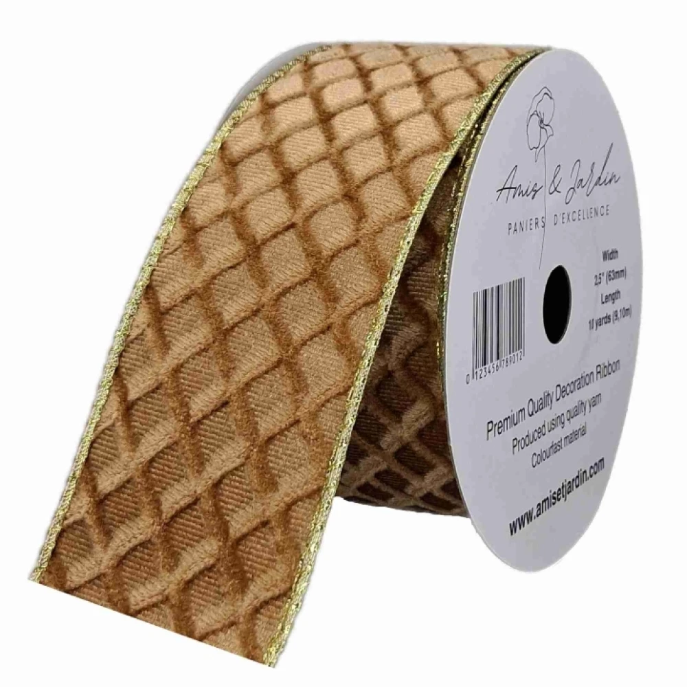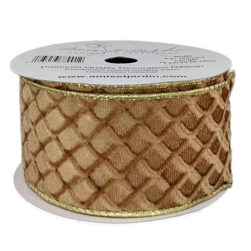 - Stuha sametová s drátkem zlatá geometrie 9.1 m