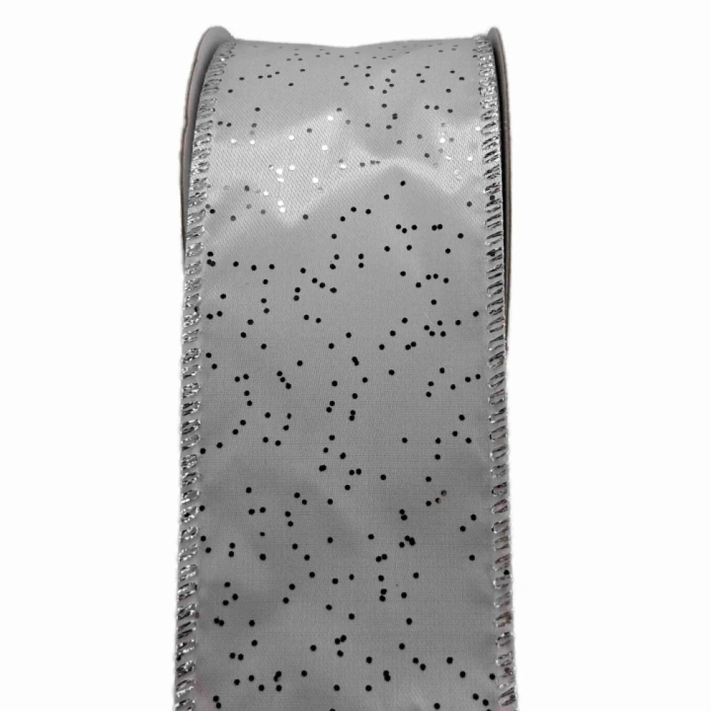 - Stuha saténová s drátkem šedá stříbrné tečky 9.1 m