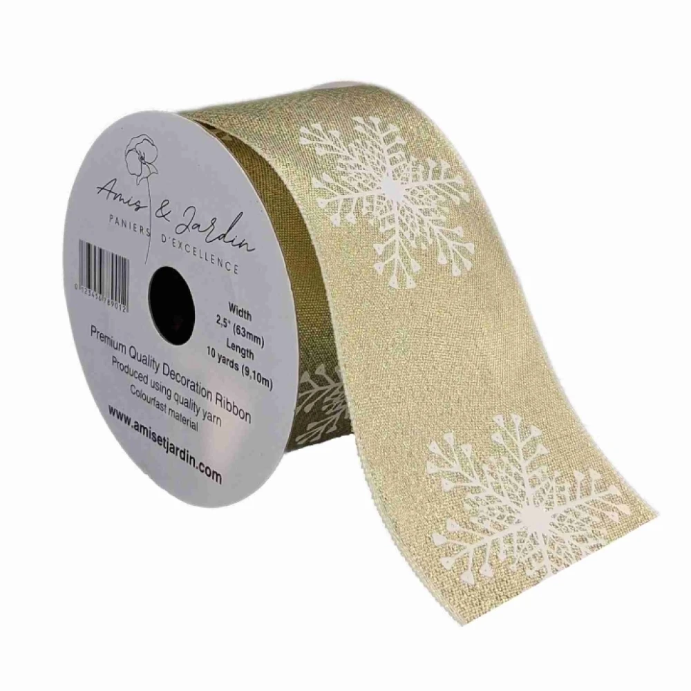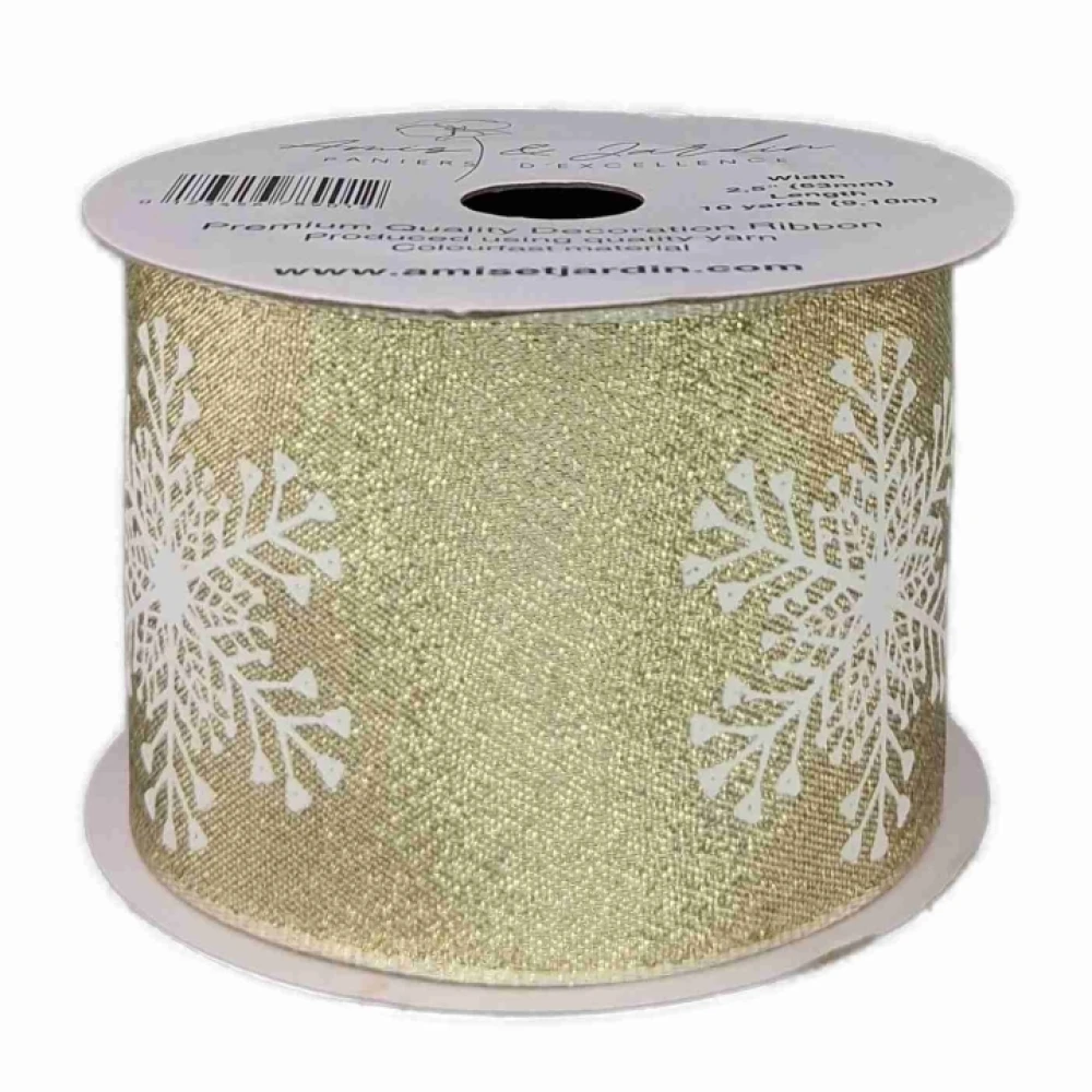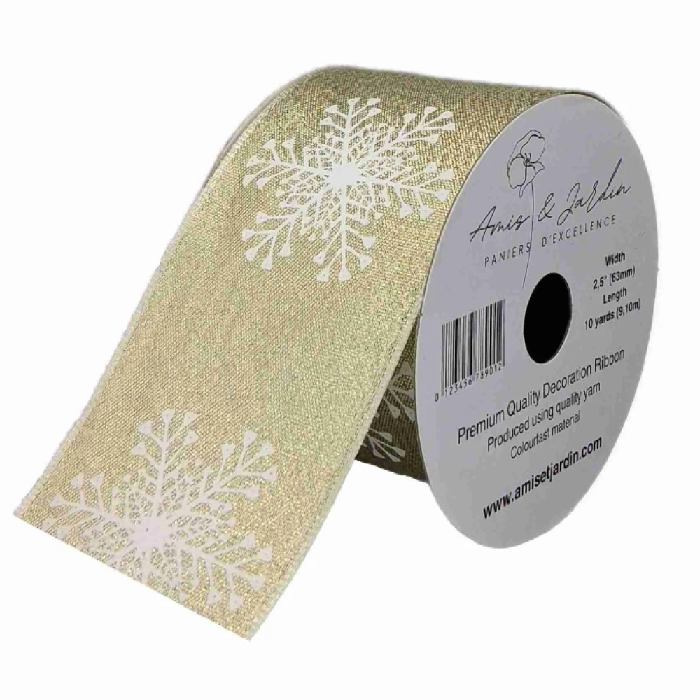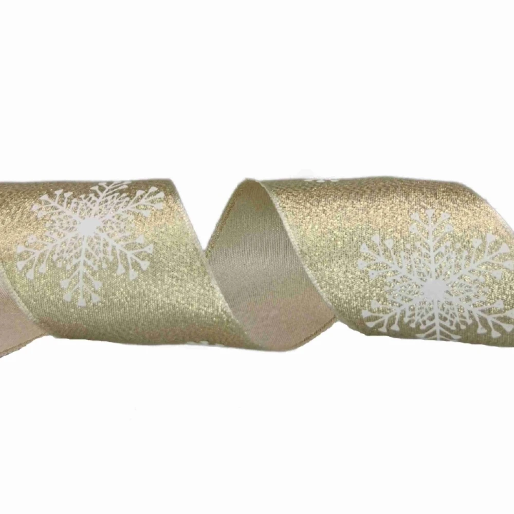 - Stuha saténová s drátkem zlatá vánoční sněhové vločky 9.1 m