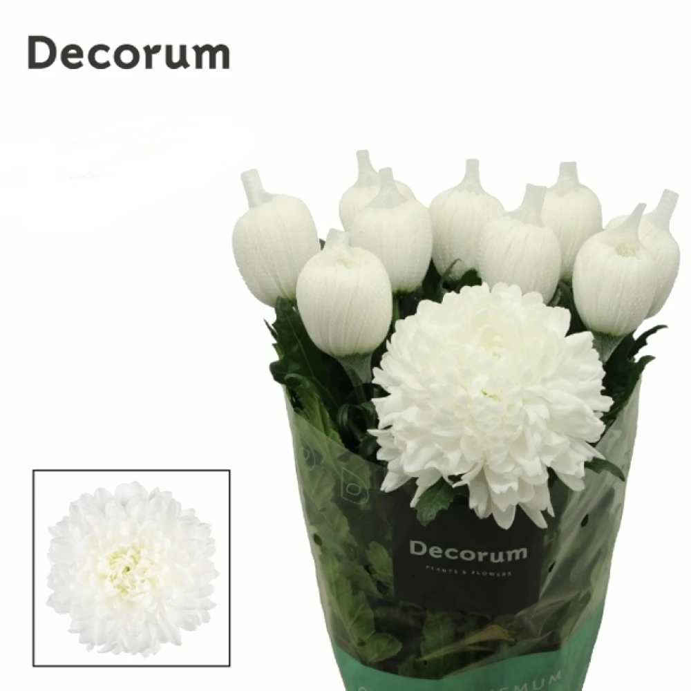 Svazek 10 jednokvětých chryzantém Antonov vyniká čistou bílou barvou, která připomíná první sníh. Tyto květiny jsou ideální pro elegantní dekorace, květinové vazby nebo jako součást smutečních kytic, kde svou barvou symbolizují čistotu a vznešenost.