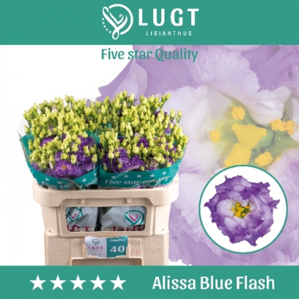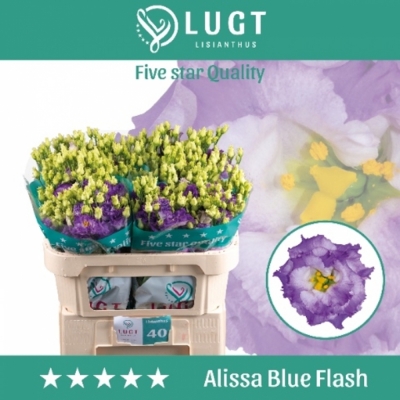 Svazek jícnovky Alissa Blue Flash se pyšní desítkou stonků, z nichž každý nese množství květů a poupat se sytě modrými okvětními lístky. Květy jsou ohraničeny delikátní zelení, která zdůrazňuje jejich živou barvu. Odrůda je známá svou výdrží a schopností zachovat si svěžest, což z ní dělá oblíbenou volbu pro svatební dekorace nebo jako středobod domácí dekorace ve váze.