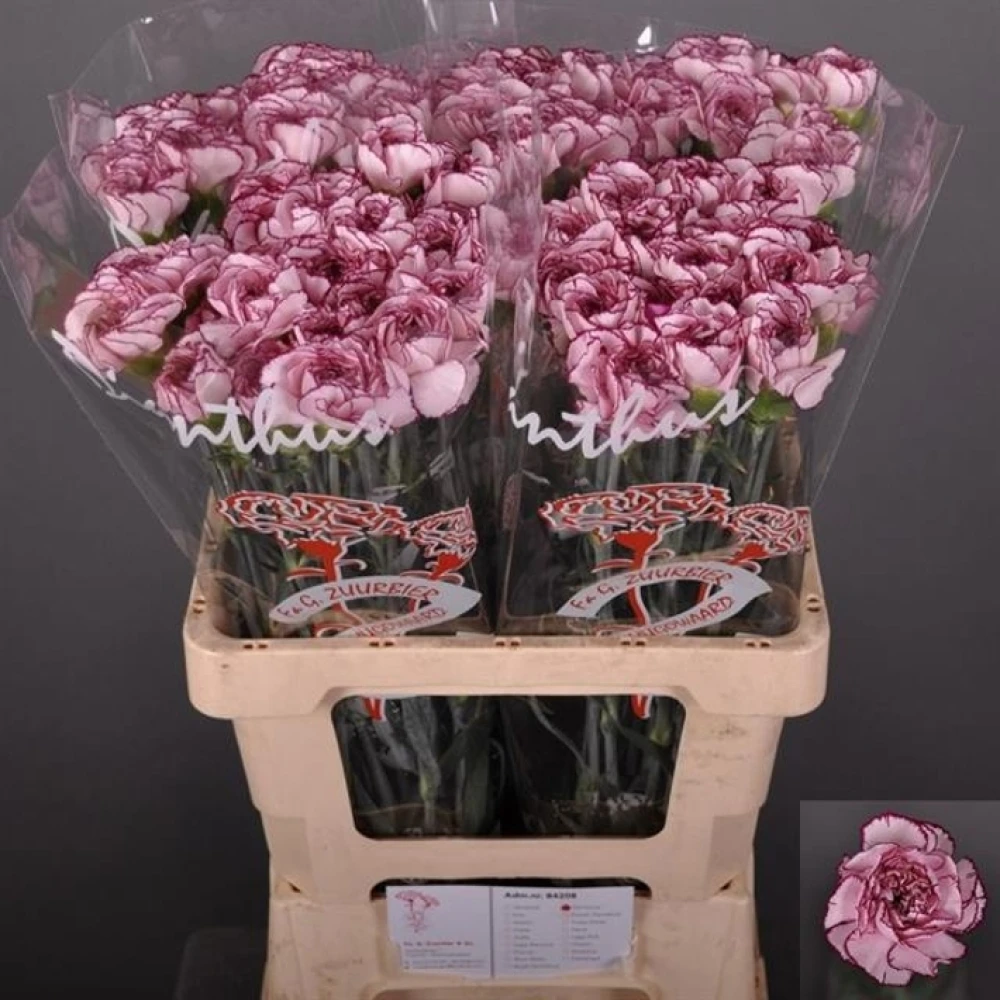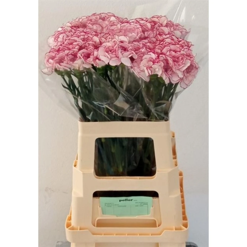 Svazek 20 jednokvětých karafiátů Damascus se pyšní nádhernými květy, jejichž okvětní lístky mají jedinečné, jemně růžovo-bílé zbarvení s tmavě růžovými okraji, připomínající staré růže. Tato odrůda je vysoce ceněná pro svůj kouzelný vzhled a vůni.
