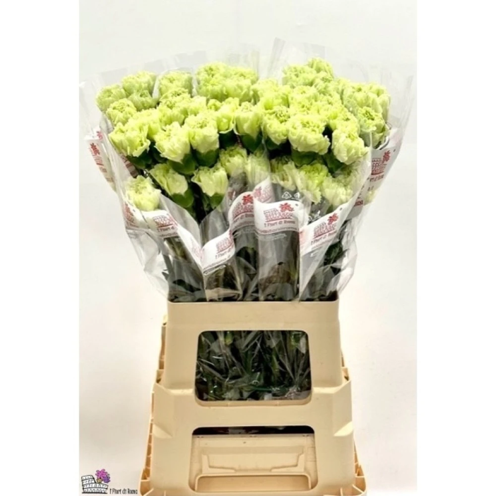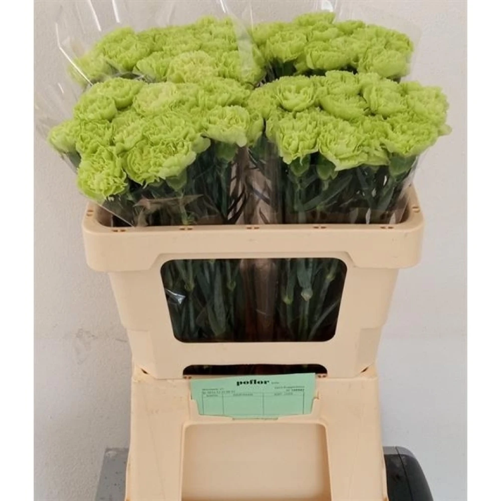 Svazek 20 jednokvětých karafiátů Green Shot překvapí svou neobvyklou světle zelenou barvou, která připomíná svěžest jarního rána. Tato barva přináší do každého prostoru pocit obnovy a života, ideální pro netradiční dekorace nebo jako originální dárek. Velmi vhodná součást květinových vazeb.