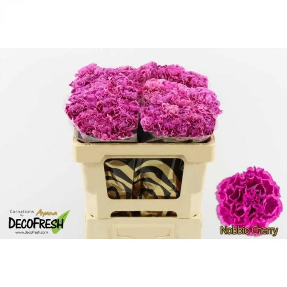 Svazek 20 jednokvětých karafiátů NOBBIO CHERRY vyniká svými sytě růžovými květy s nádechem temně třešňové barvy, které jsou stejně bohaté a lákavé jako zralé ovoce v létě. Odrůda je ceněná pro své výrazné barvy a dlouhou výdrž, díky čemuž je oblíbenou volbou pro dekorace i jako dar.