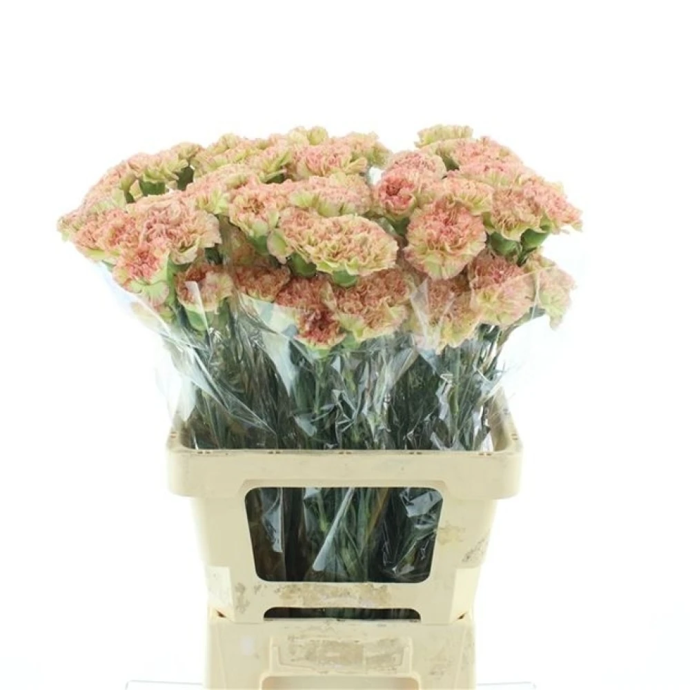 Svazek 20 jednokvětých karafiátů Nowo vás okouzlí svou neobvyklou pastelově růžovou barvou s nádechem lososové, která připomíná jemnost ranního svítání. Tento odrůdový unikát zaujme nejen svou barvou, ale i robustností a dlouhou životností.