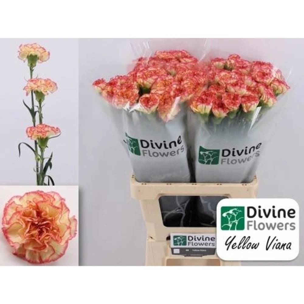 Svazek 20 jednokvětých karafiátů Yellow Viana okouzlí svými jasnými žlutými květy s červeným lemováním, což přidává květinám nádherný kontrast a vizuální hloubku. Tento živý a oslňující vzhled je ideální pro všechny příležitosti, od slavnostních událostí po jemné domácí dekorace.