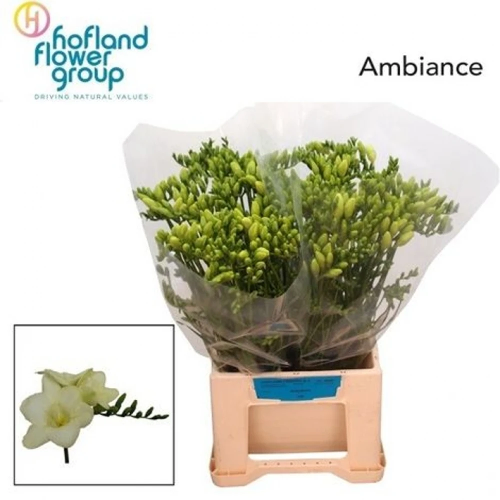 Svazek 50 bílých frézií EN AMBIANCE představuje vrchol elegance a čistoty. Vybrané frézie s bílými květy připomínají první sněhové vločky na čerstvě rozkvetlé louce, přinášející do každého prostoru pocit míru a svěžesti. Ideální pro sofistikované aranžmá nebo jako klíčový prvek ve vaší dekoraci, bílá frézie jsou symbolem nových začátků a nevinnosti. Díky pečlivému zpracování a balení, tyto frézy uchovávají svou krásu a po dlouhou dobu.