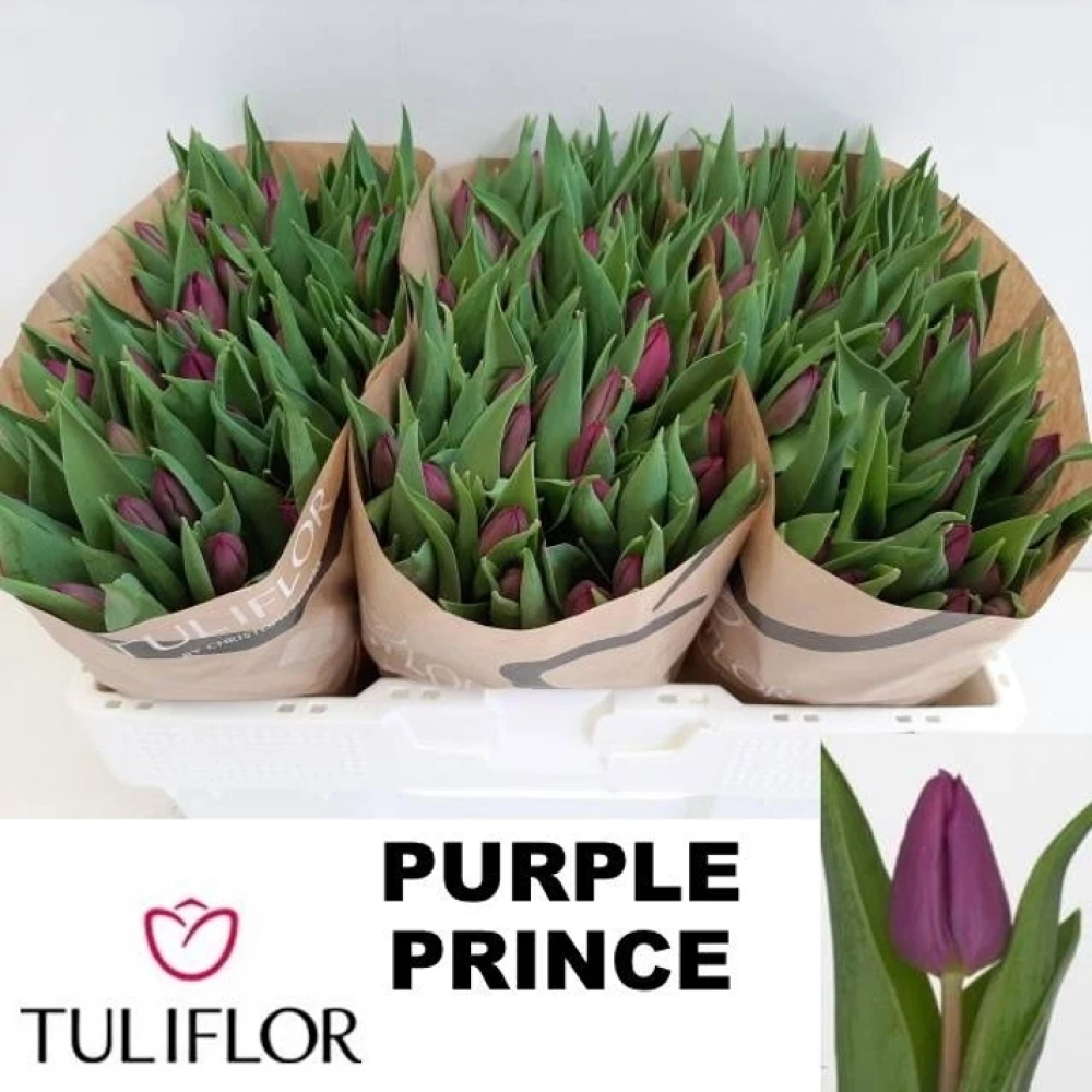 Svazek 50 fialových tulipánů PURPLE PRINCE představuje klasickou eleganci s jednoduchým, ale výrazným vzhledem. Tulipány mají temně fialovou barvu, která připomíná nádherné odstíny večerní oblohy. Stačí vložit svazek tulipánů do skleněné vázy a vaše dekorace je hotová.