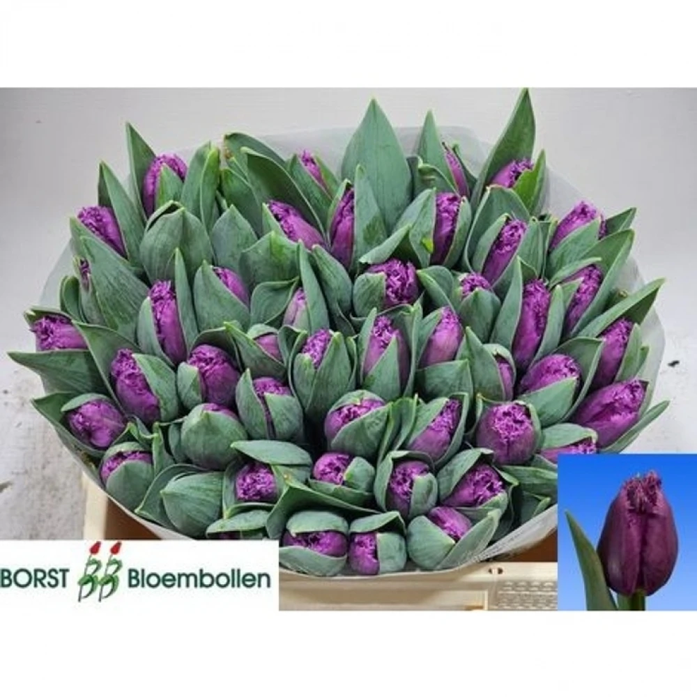 Tulipány FR SAN LUIZ oslní svojí jedinečností a krásou. Každý květ má specifické střapaté okraje, které připomínají jemné krajkování a dodávají květům výjimečný vzhled. Tento typ tulipánu vyniká svou temně fialovou barvou, evokující barvu nočního nebe při západu slunce. Jsou ideální pro vložení do čisté skleněné vázy.