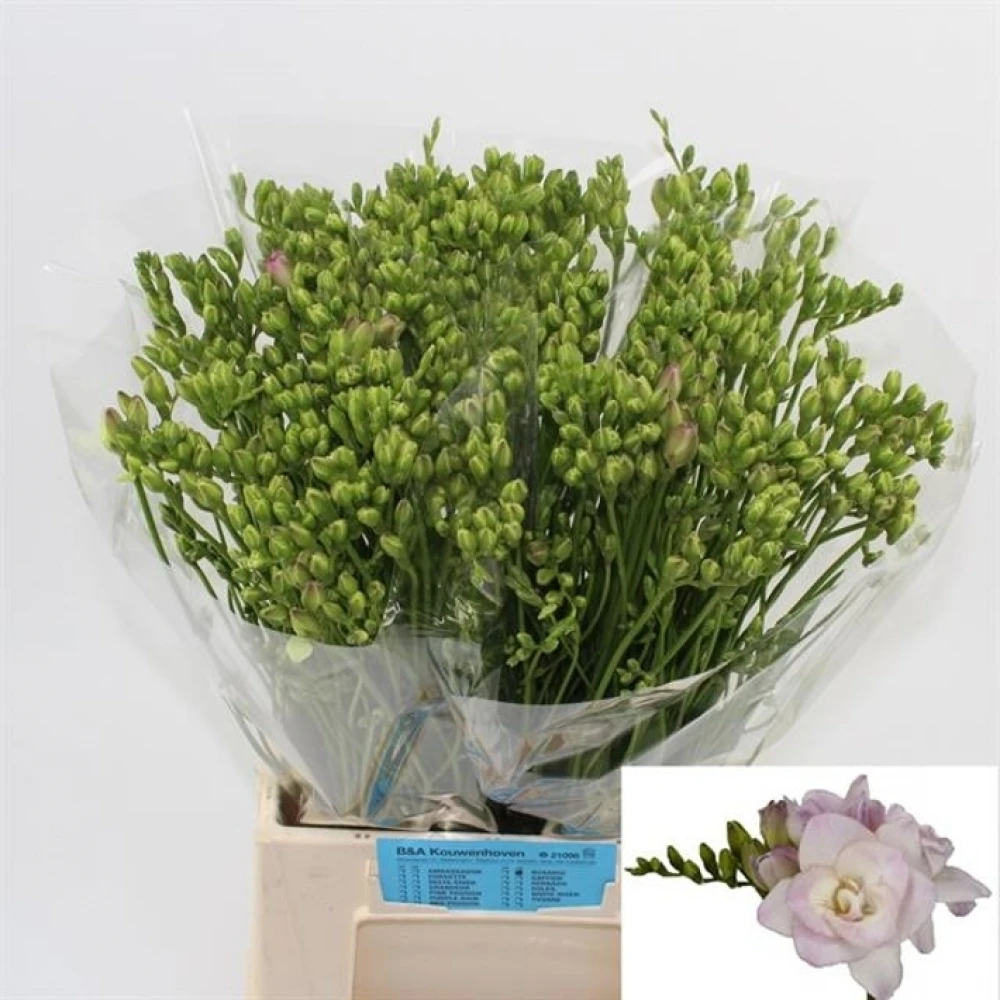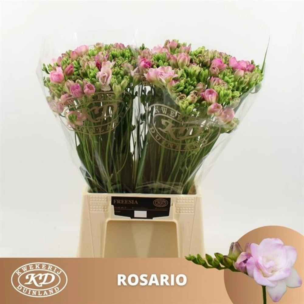 Otevřete svazek růžových frézií DU ROSARIO a nechte se unášet jejich rozkvětem, který přináší pocit obnovy a radosti. Jejich sofistikovaný vzhled a svěží vůně okamžitě oživí váš domov nebo kancelář, přinášejíc pocity klidu a pohody. Tyto frézie jsou perfektní volbou pro zvláštní příležitosti nebo jako krásný dárek pro milované osoby. Díky exkluzivnímu dovozu z Holandska a pečlivému balení po 50 kusech zaručujeme, že frézie dorazí ve vrcholné kondici bez jakéhokoli manipulování během transportu.