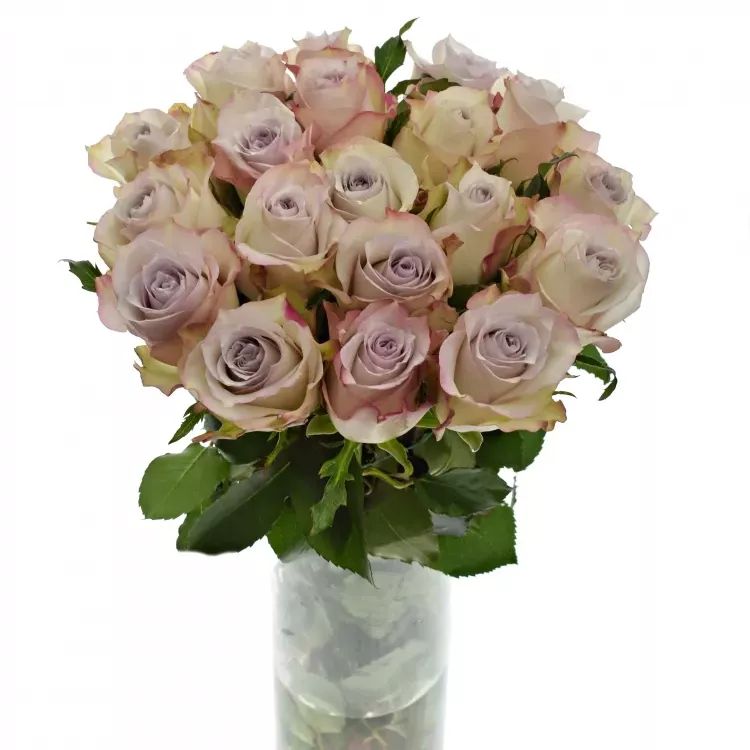 Světlounce fialová růže s fialovou konturou květů a nádechem stříbrných barev se bude vyjímat ve svatebních kyticích, ale i v kyticích ke stříbrným výročím svatby. Udělá parádu i s květy starorůžových a krémových barev, nebo v kontrastu s temně fialovými či třešňově růžovými květy.