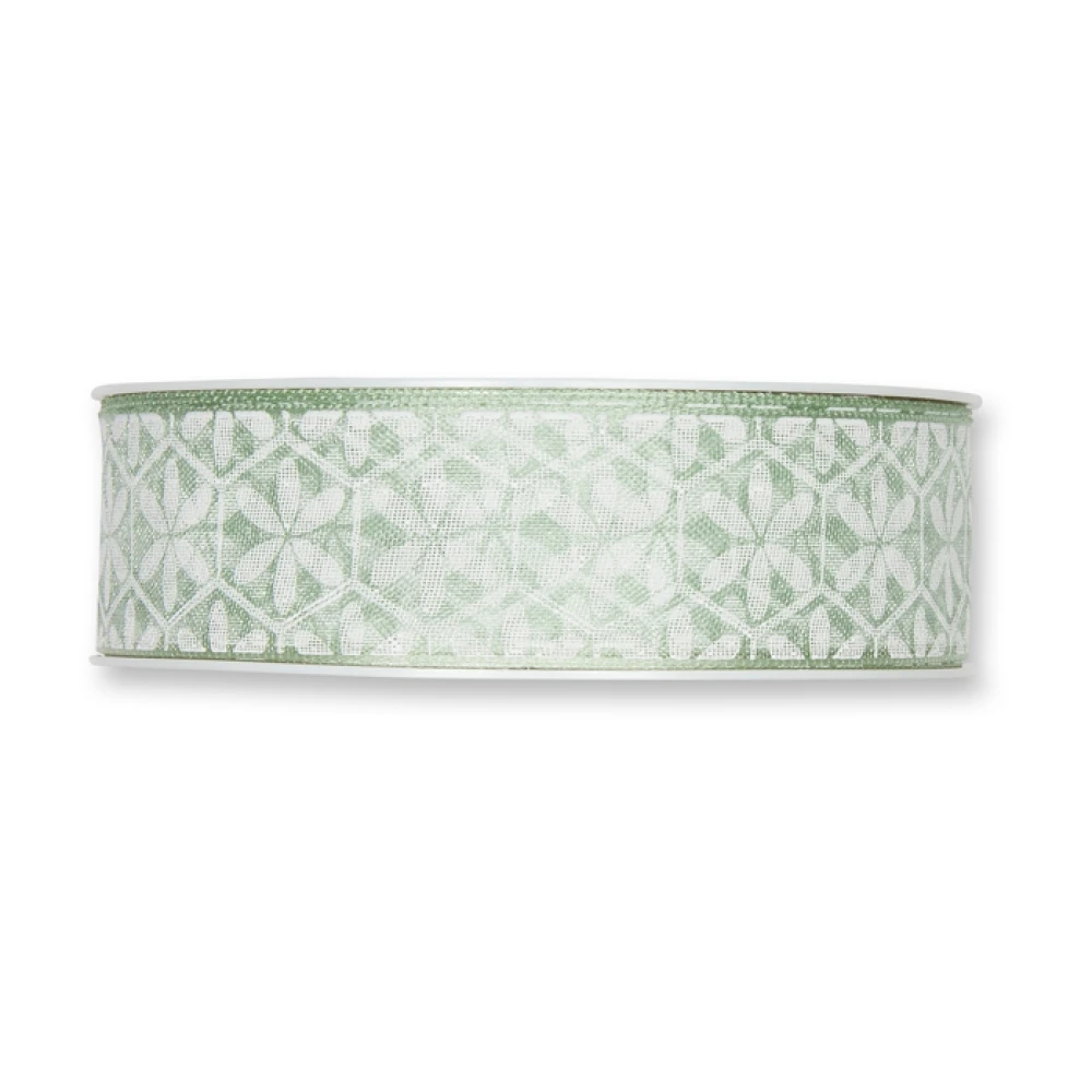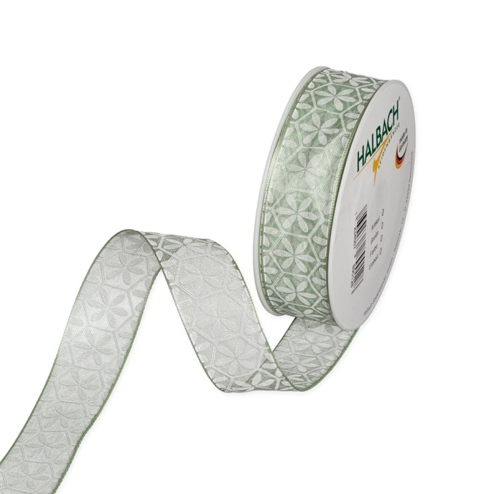 - Transparentní potištěná stuha s květinovým vzorem zelená 25mm x 20m
