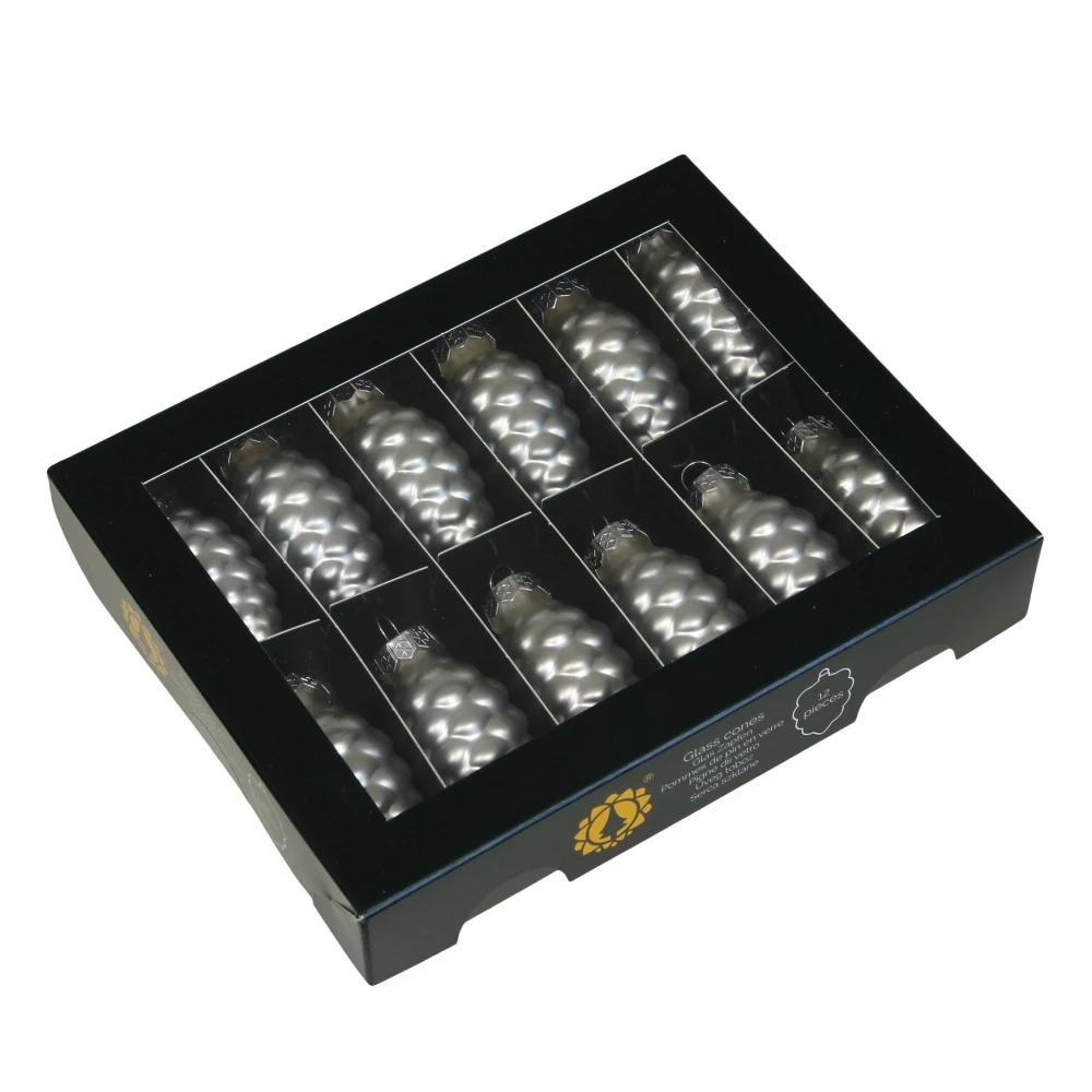 VÁNOČNÍ OZDOBY glass cones/cap silver mat 60mm/12ks