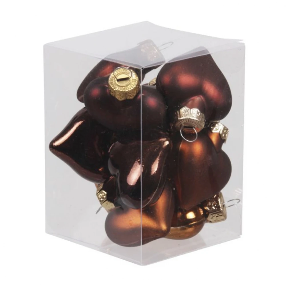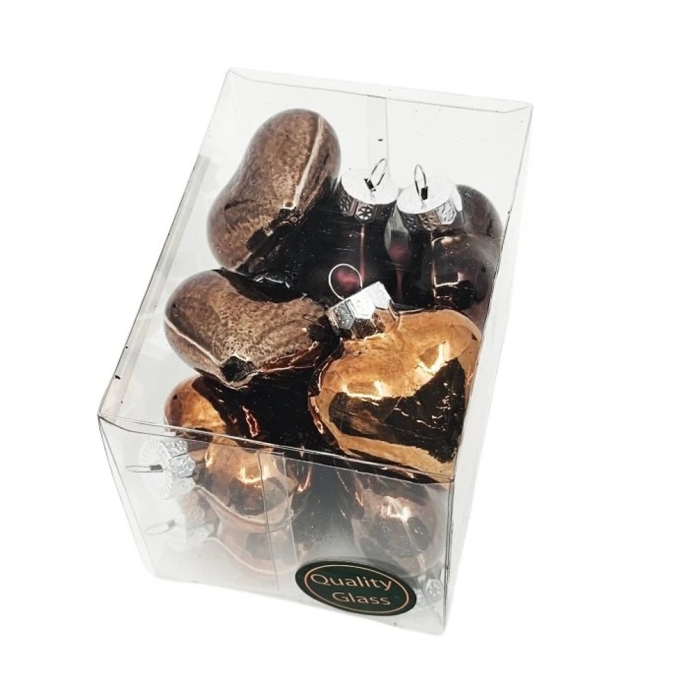 - VÁNOČNÍ OZDOBY glass hearts dark brown 40mm/12ks