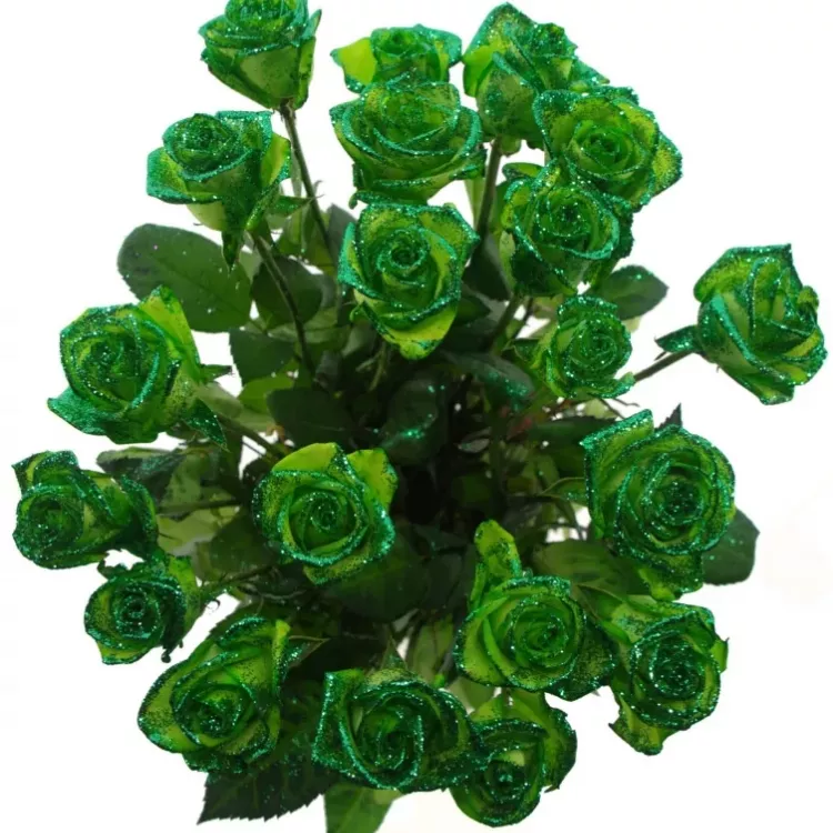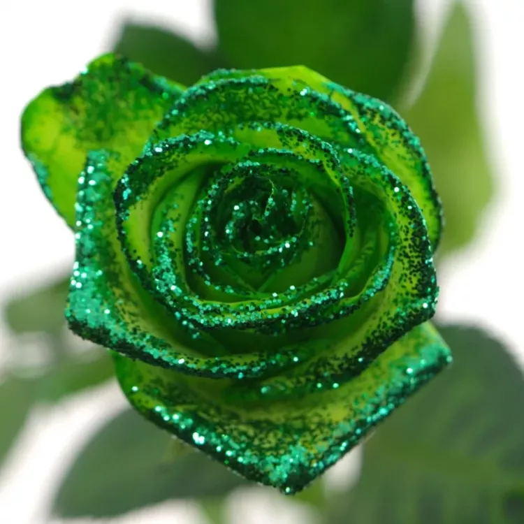 Zelená růže Green Glitter Vendela je opravdovým klenotem, který přináší neobvyklou eleganci a svěžest. S vysokým počtem okvětních lístků, vytváří bohatý a plný květ. Její živá zelená barva, zdánlivě posypaná jemným třpytem, dává květu zářivý a čerstvý vzhled. Stonky bez trnů této růže zajišťují snadnou a bezpečnou manipulaci. Green Glitter Vendela má unikátní vůni.