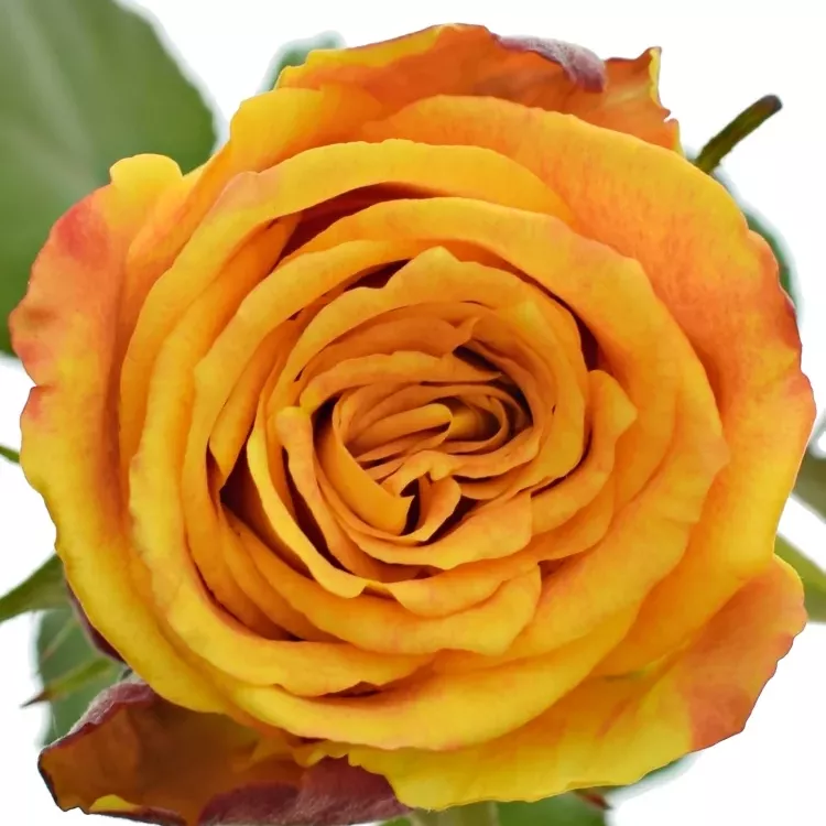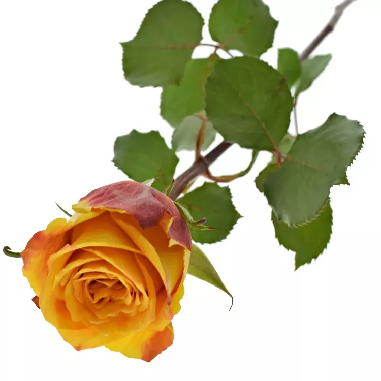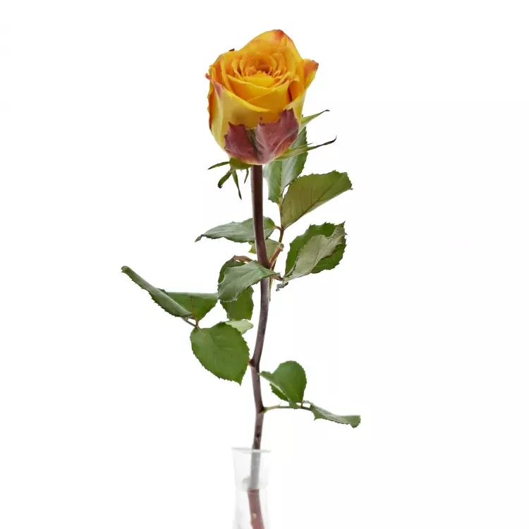 - Na této růži můžete napočítat až 65 okvětních plátků, které přecházejí od žlutých tónů až po červené.