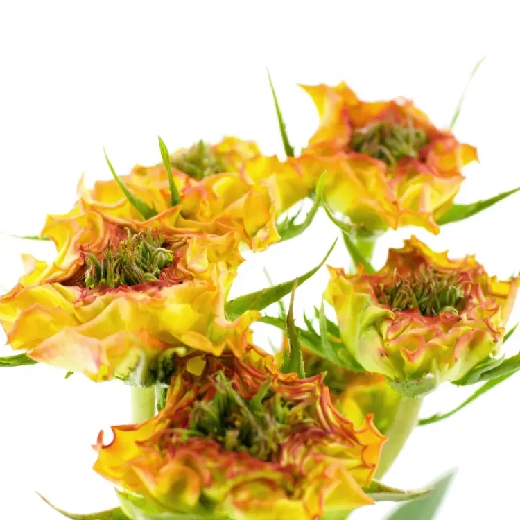 Doporučujeme kombinovat s něžnějšími druhy květin - například standardní jednokvěté růže nebo karafiáty.