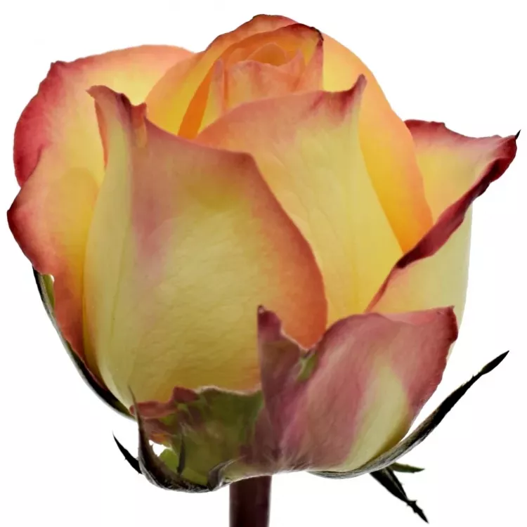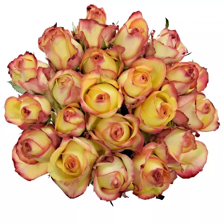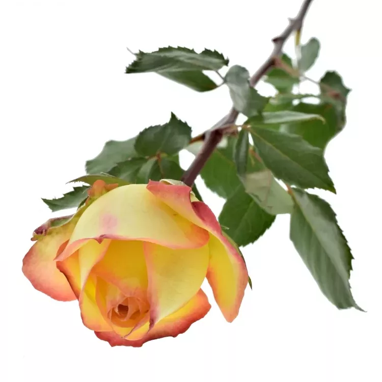 Žlutočervená růže je příkladem přírodního umění, s velkým květem velikost L. Dynamické barevné přechody od žluté u báze po červenou na okrajích lístků připomínají lávu proudící z vrcholu sopky.