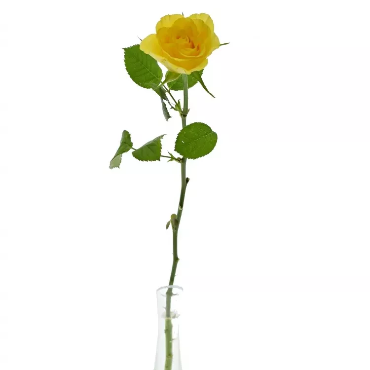 Žlutá růže WEAVER, s květem velikosti S, je jako záře prvních letních slunečních paprsků. Její jemné žluté lístky se skládají do dokonalého tvaru, který přináší dojem sladké elegance a zároveň symbolizuje přátelství a radost.