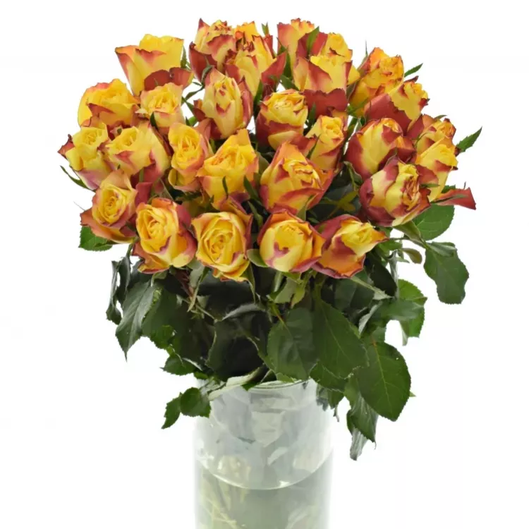 Krása vícebarevných růží je na vzestupu. Jsou velice dekorativními květinami na stůl, ale ještě lépe vypadají v kontrastní kytici, např. s krémovými růžemi, kde krásně vynikne jejich vzor. Co byste měli o žlutočervených růžích Newsflash vědět: