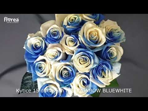 Nechte se unést kouzlem kytice 15 duhových růží Rainbow BlueWhite, kde se setkává mořská modrá s jemným krémovým tónem. Tento nevšední kontrast dodává kytici výjimečný charakter, ideální pro oslavu jedinečných okamžiků, k narozeninám, k svátku nebo jako dar pro milovníky originální krásy.