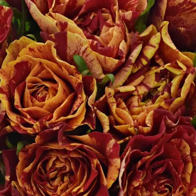 Kytice 15 žíhaných růží FIRE CRACKER přitahuje pohledy svými intenzivními odstíny oranžové a červené, probarvenými žlutými a zelenými nádechy. Tyto růže připomínají plameny a jsou jako stvořené pro energické oslavy nebo jako gesto plné vášně a entuziasmu. Jejich dramatické žíhání je ideální pro okamžiky, kdy chcete udělat silný dojem, jako jsou výročí, romantické příležitosti, narozeniny nebo dokonce promoce.