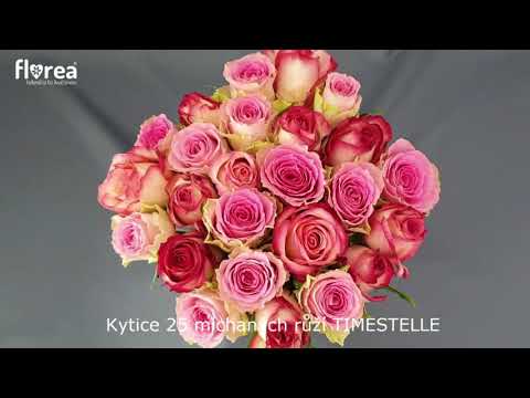 Kytice 25 míchaných růží Timestelle v rozmanitých odstínech růžové, od jemně pastelové po hlubokou magentu, připomíná skvostné svítání. Ideální pro svatební den, výročí, nebo jako prostý výraz lásky.