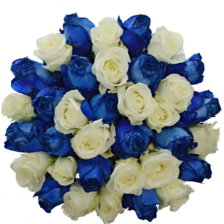 Snést někomu modré z nebe znamená dopřát mu to nejlepší. Blankytně modrá obloha křižovaná nadýchanými bílými obláčky rozhodně na seznam toho nejlepšího, co můžeme vidět, patří. Kousek z té oblohy se ukryl do kytice 35 růží, aby se vaše slova "snesl bych ti modré z nebe" mohla proměnit ve skutečnost.