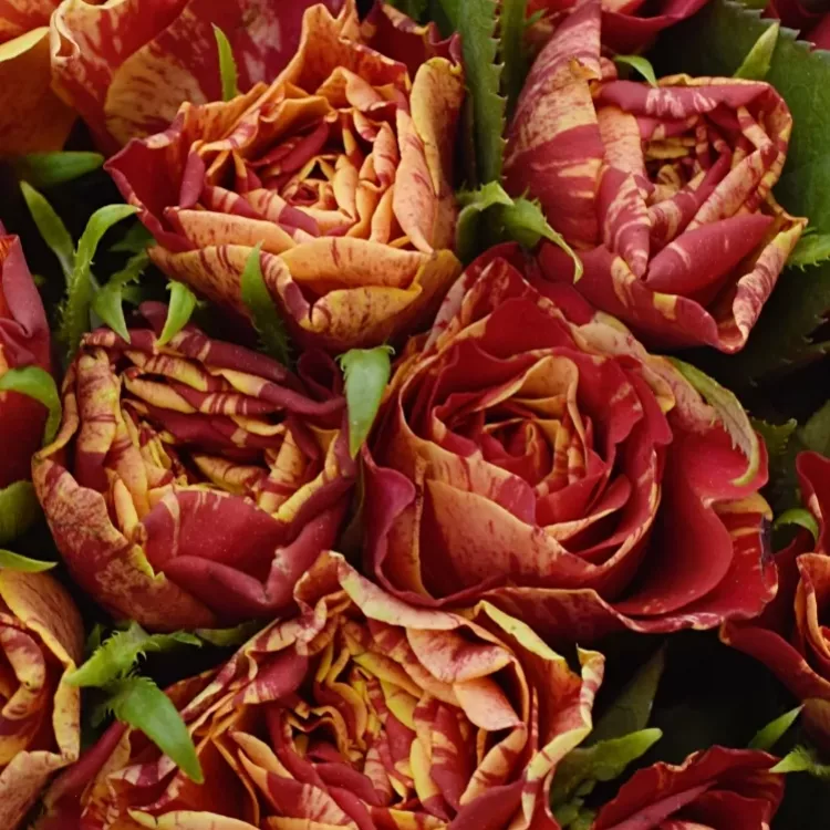 Kytice 55 žíhaných růží FIRE CRACKER 50cm