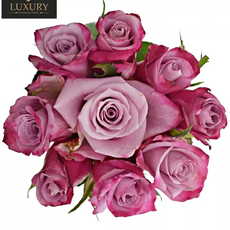 Kytice 9 luxusních růží ROCKFIRE v sobě snoubí eleganci a okouzlující barvu, která se plynule mění od světlejších růžových odstínů v základu až po intenzivní bordó okraje. Tento atraktivní vizuální efekt činí tyto růže ideální volbou pro významné příležitosti, jako jsou výročí, romantická setkání, narozeniny nebo jako prostředek pro vyjádření hlubokého obdivu a úcty. Díky svému výraznému vzhledu jsou také skvělou volbou pro výzdobu na luxusních akcích nebo jako centrální prvek ve svatebních kyticích.