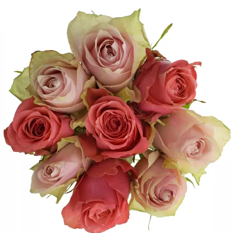 Kytice SWEET DELIGHT se skládá z devíti nádherně míchaných růží v odstínech jemně růžové a živě červené, které přecházejí do zářivě žluté. Tyto růže symbolizují romantiku, vděčnost a obdiv, což je činí ideální volbou pro vyjádření hlubokých emocí při zvláštních příležitostech jako jsou výročí, narozeniny, Valentýn nebo pro vyjádření díků a uznání.