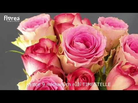 Kytice 9 míchaných růží TIMESTELLE je jako sen zahalený do pastelově růžových tónů, které se plynule prolínají s jemnými odstíny žluté a červené na okrajích každého květu. Skvělý výběr pro každou příležitost, od romantických večerů po elegantní pozornost.