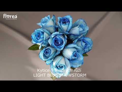 Kytice 9 modrých růží LIGHT BLUE SNOWSTORM přitahuje pozornost svou neobvyklou barvou, která přináší pocit tajemna. Tyto barvené růže jsou ideální pro okouzlující a originální dary, a jsou vhodné pro speciální příležitosti jako jsou výročí, narozeniny, promyšlená překvapení, nebo jako umělecký prvek v moderních interiérech.