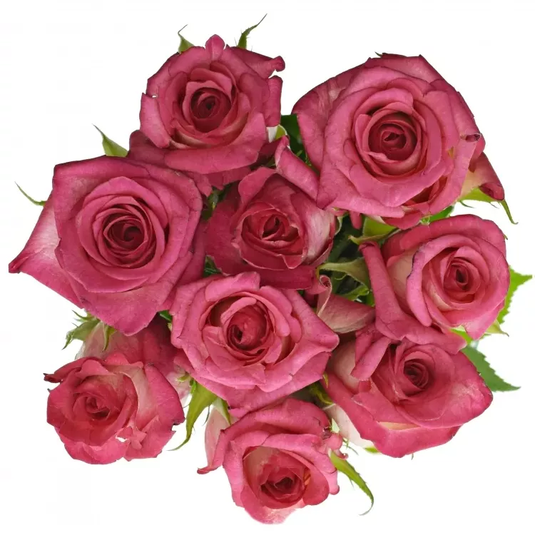 Kytice devíti žíhaných růží CLARION je nápaditá a vizuálně působivá volba pro každou příležitost. Tyto růže mají jedinečný odstín, kde se mísí jemné růžové tóny s hlubokými načervenalými, což jim dodává moderní a dynamický vzhled. Je ideální pro romantické gesto, oslavu narozenin nebo jako způsob, jak oživit interiér.