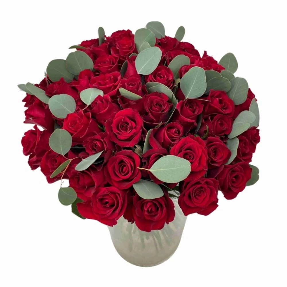 Kytice na Den matek - 55 EVER RED 60 cm EUCALYPTUS