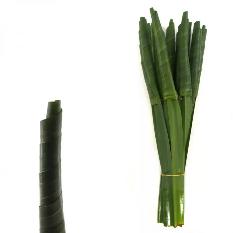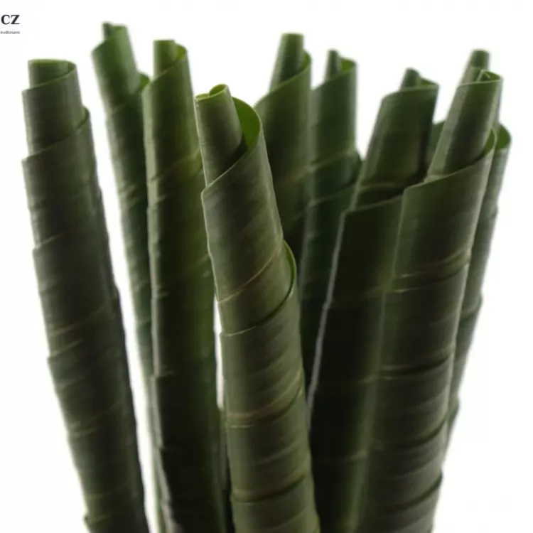 Vrcholy větví nesou spirálovitě uspořádané, tmavě zelené listy, které jsou přisedlé, jednoduché, mečovité se širokou bází a dlouhou špičkou na vrcholu. Tyto spirálovité listy se ve floristice využívají jako dekorační zeleň, která se hodí do každé květinové vazby. Na našem e-shopu je pandán dostupný v délce 50 až 110 centimetrů a můžete jej zakoupit online po celý rok.
