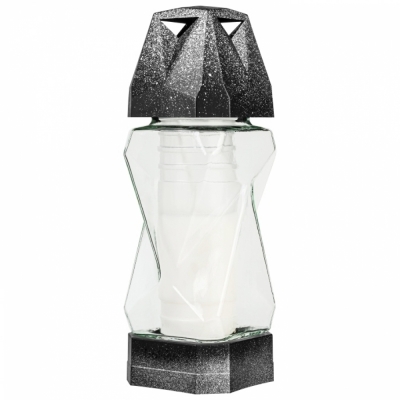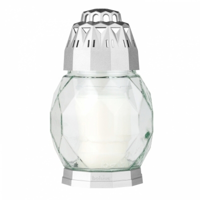 DetailHřbitovní lucerna skleněná Diamant stříbrná 24 hod (výška 180 mm, šířka 110 mm)